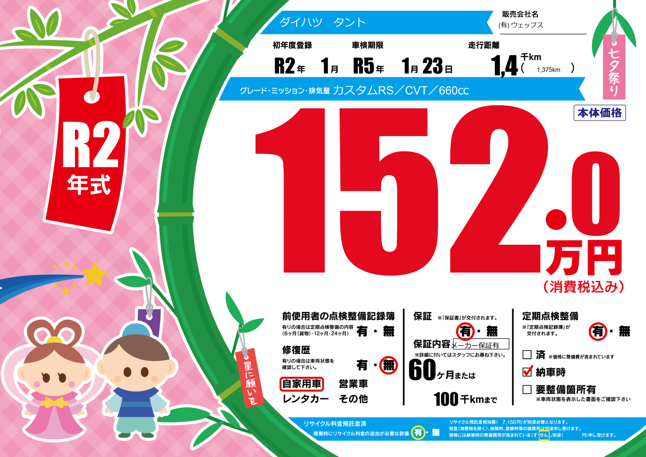 なし | 車検制限 | R5年1月23月 |