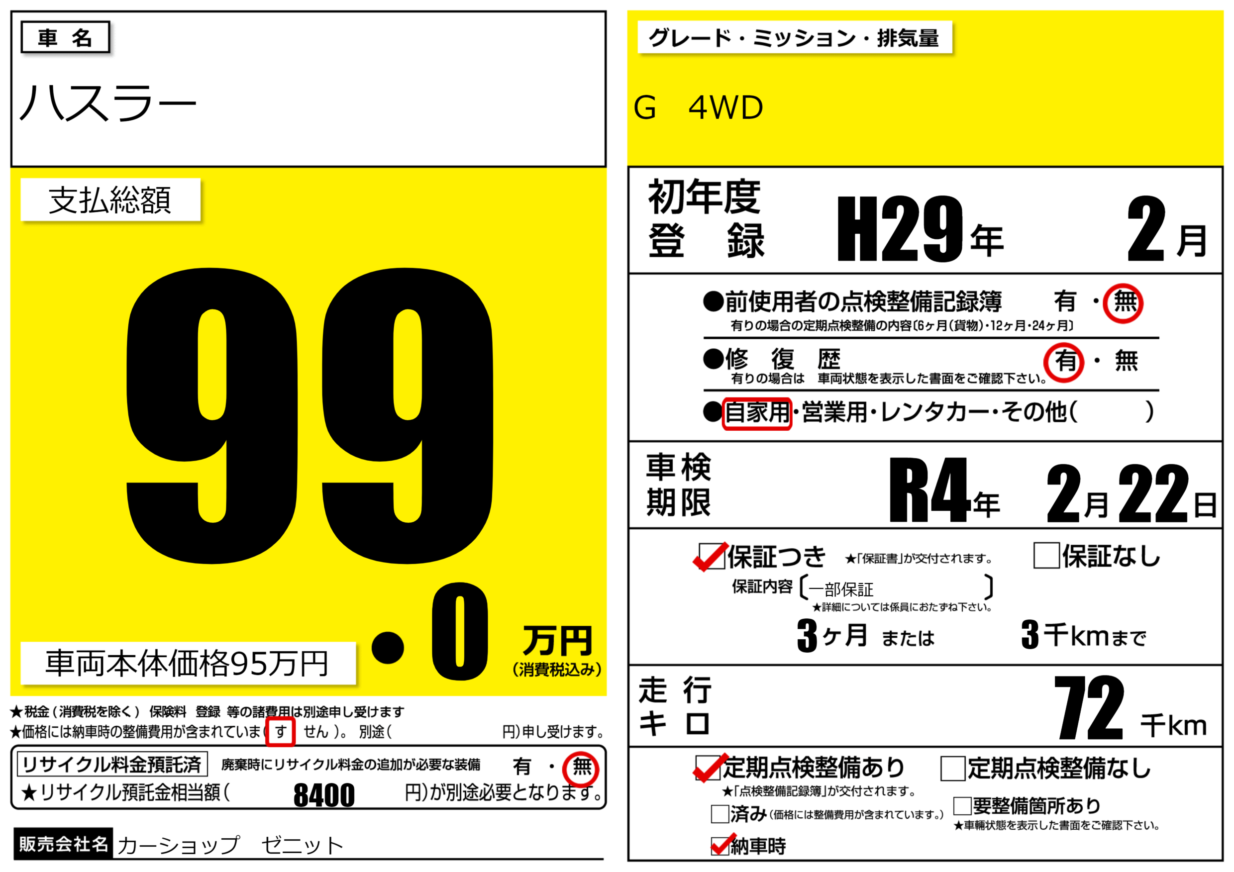| 車名 | ハスラー | グレード ミッション 排気量 |