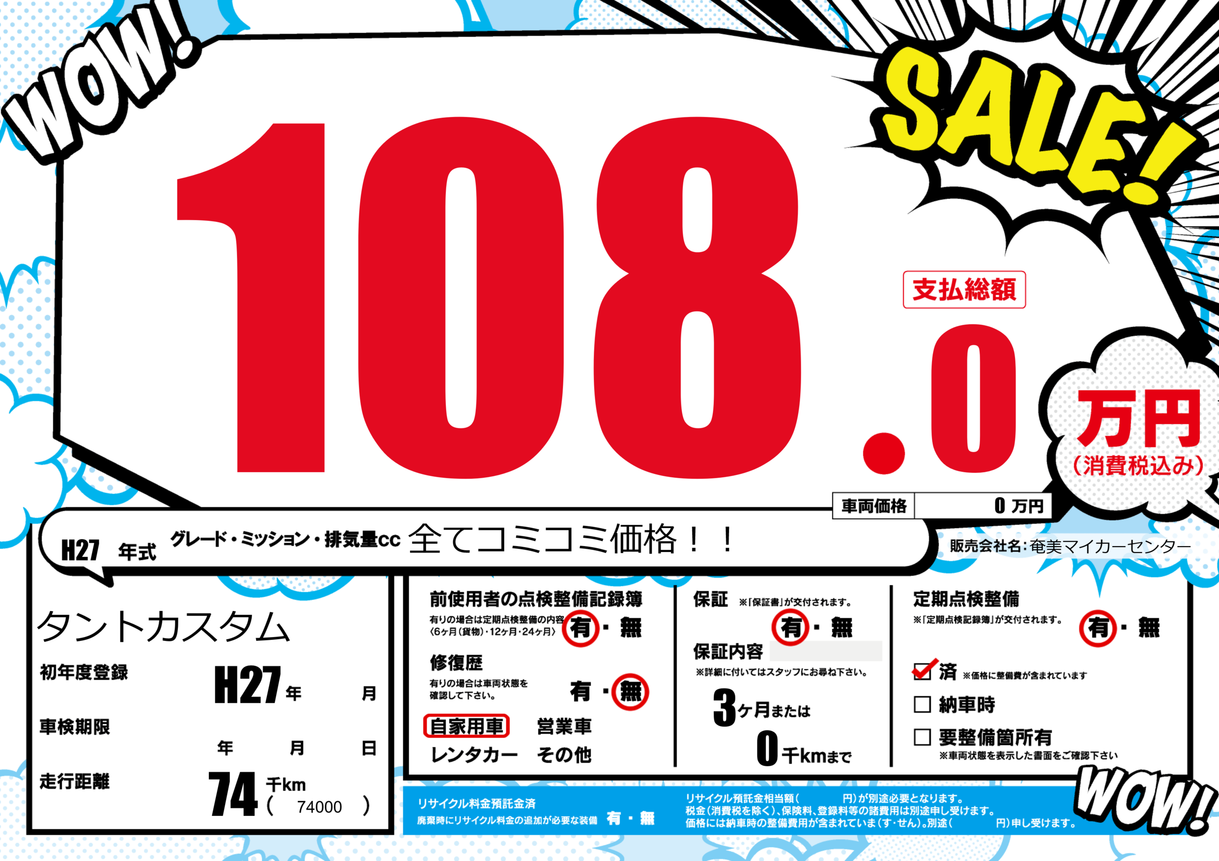 | 定期点検整備 | 定期点検整備あり 定期点検整備済み | ||