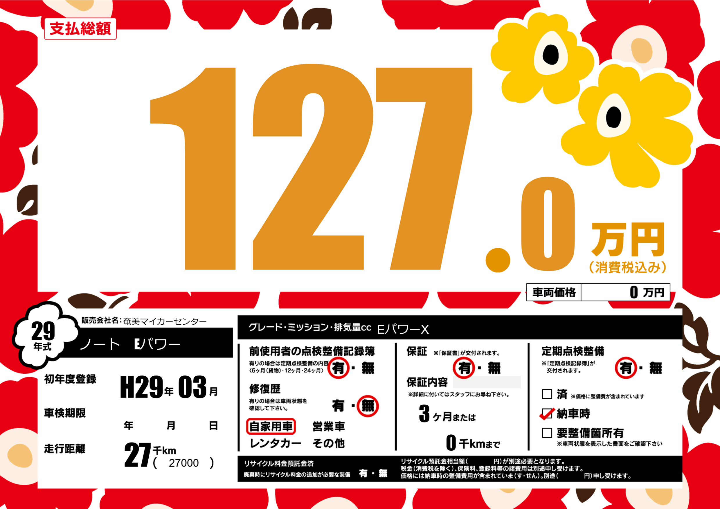 | 車名 | ノート Eパワー | グレード ミッション 排気量 |