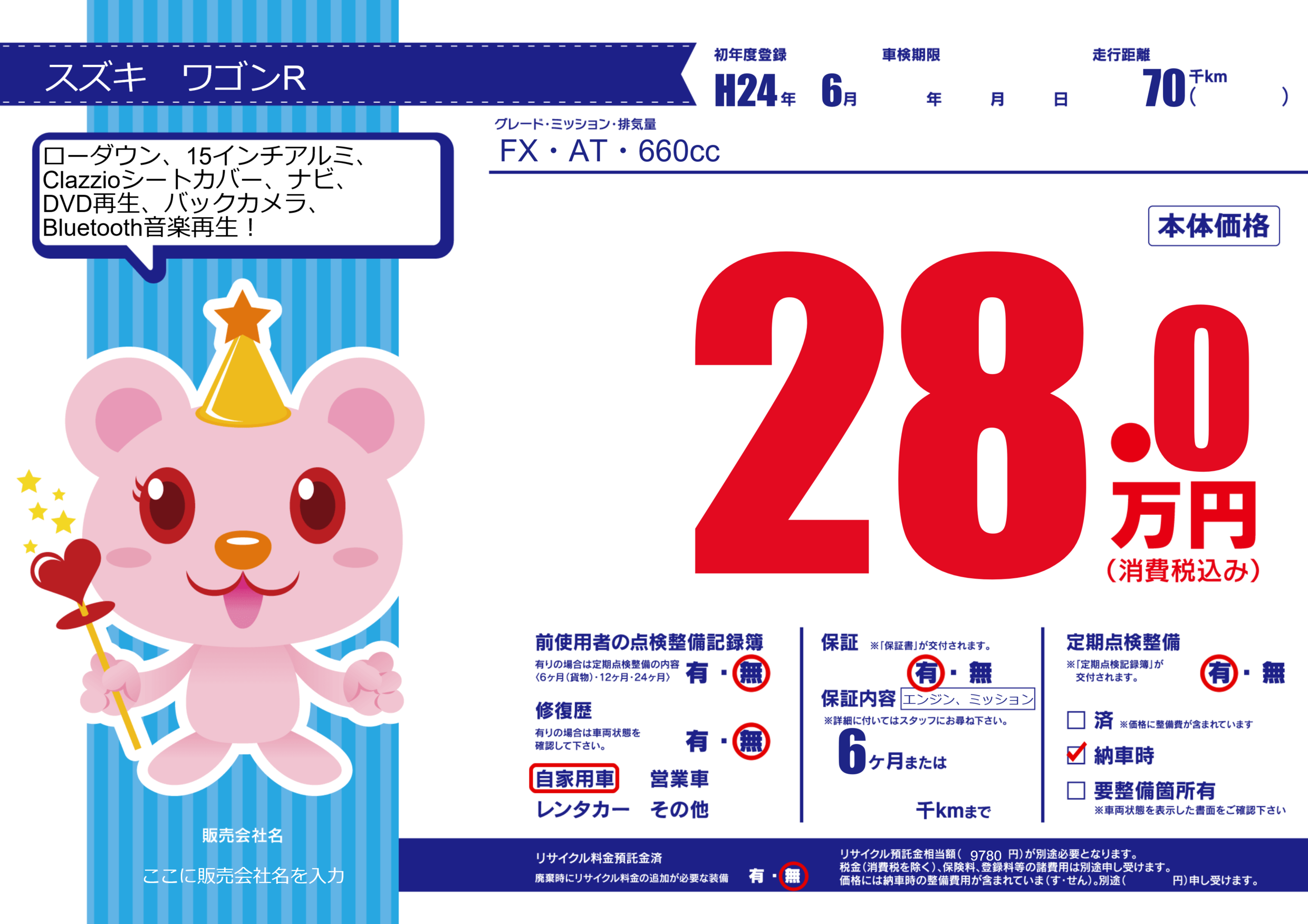 | 定期点検整備 | 定期点検整備あり 納車時あり | ||