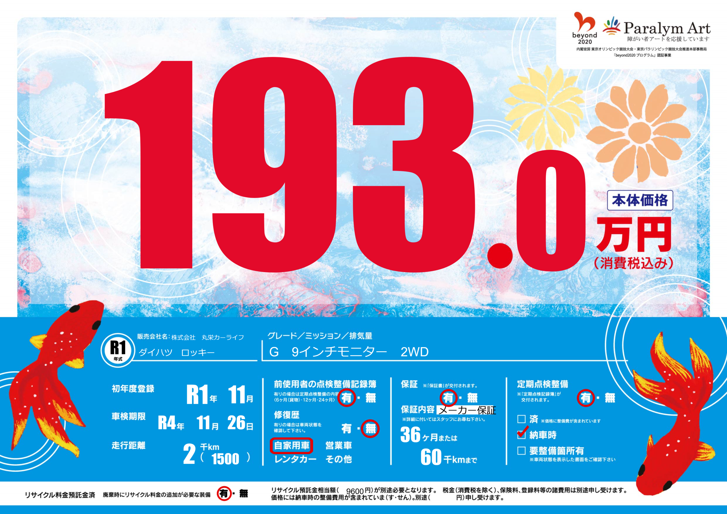 | 走行キロ | 0.2万km | 初年度登録 | R1年11月 |