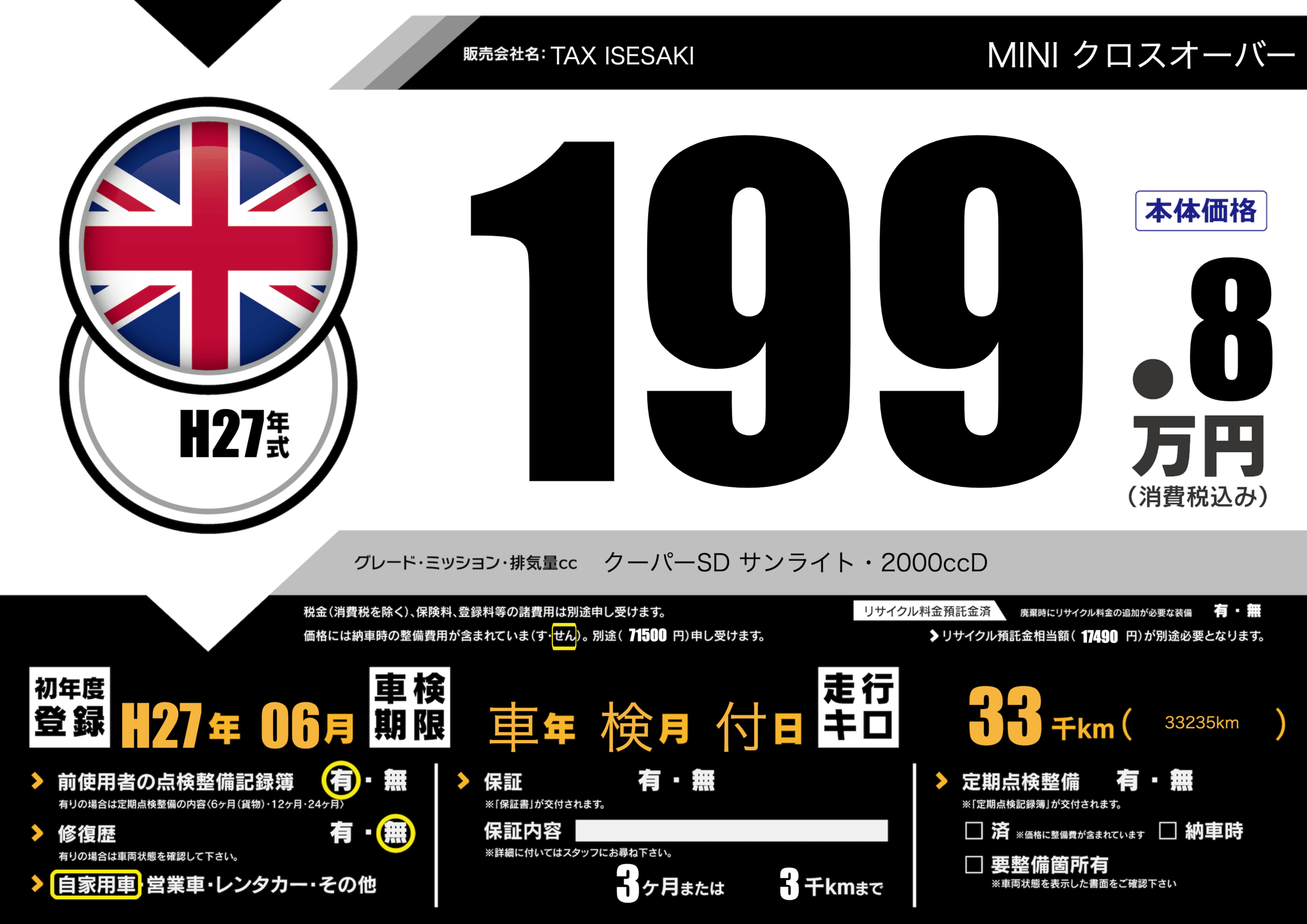| 走行キロ | 3.3万km | ||