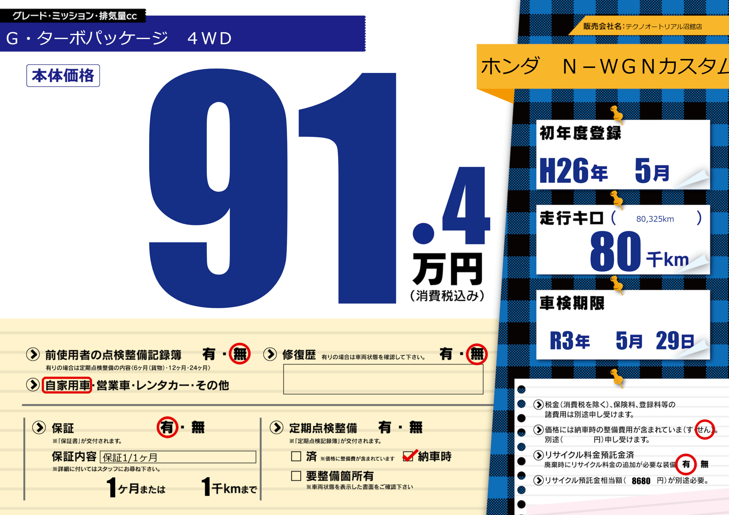 | 車名 | ホンダ N-WGNカスタム | グレード ミッション 排気量 |