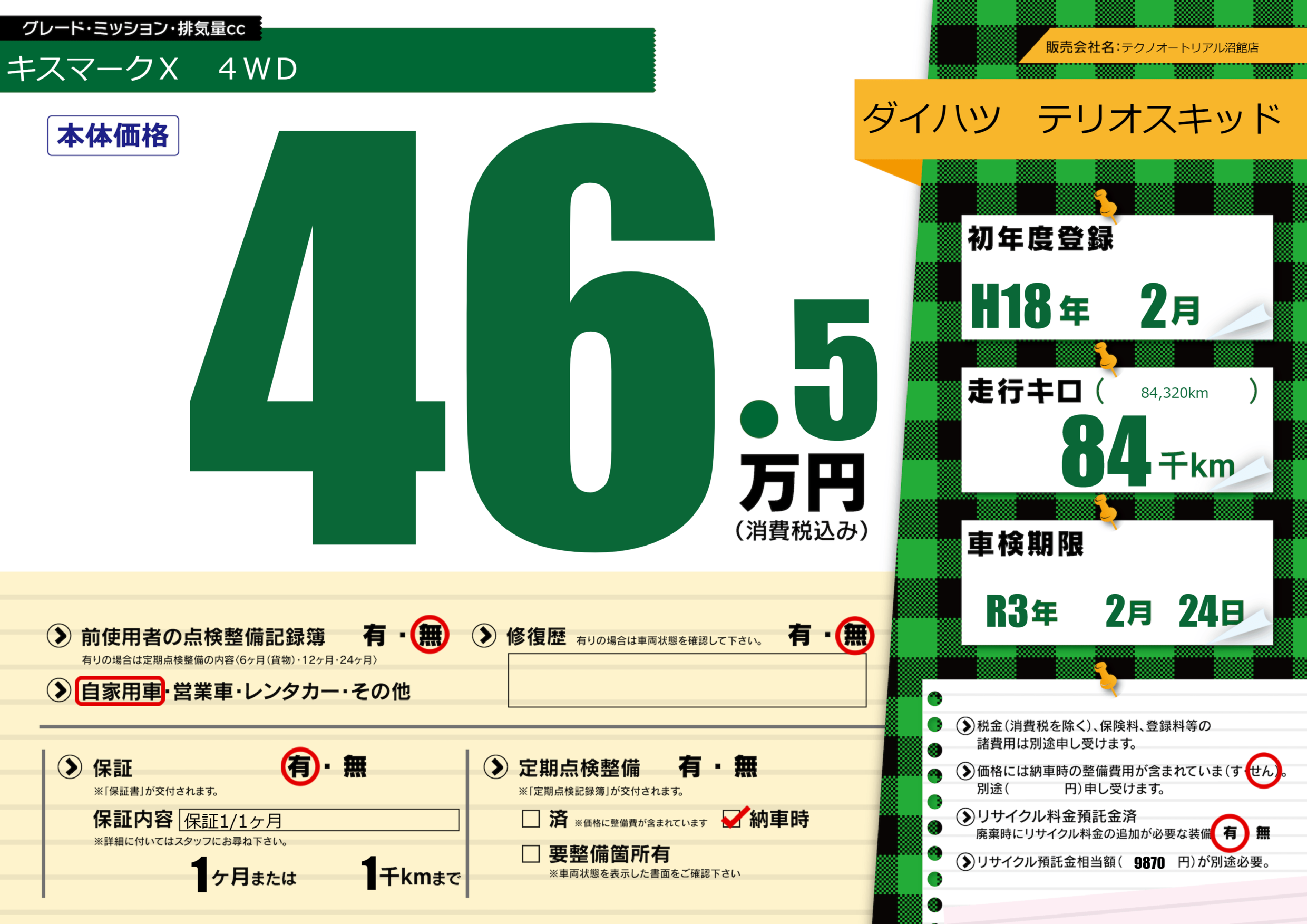 あり | 車検制限 | R3年2月24月 |