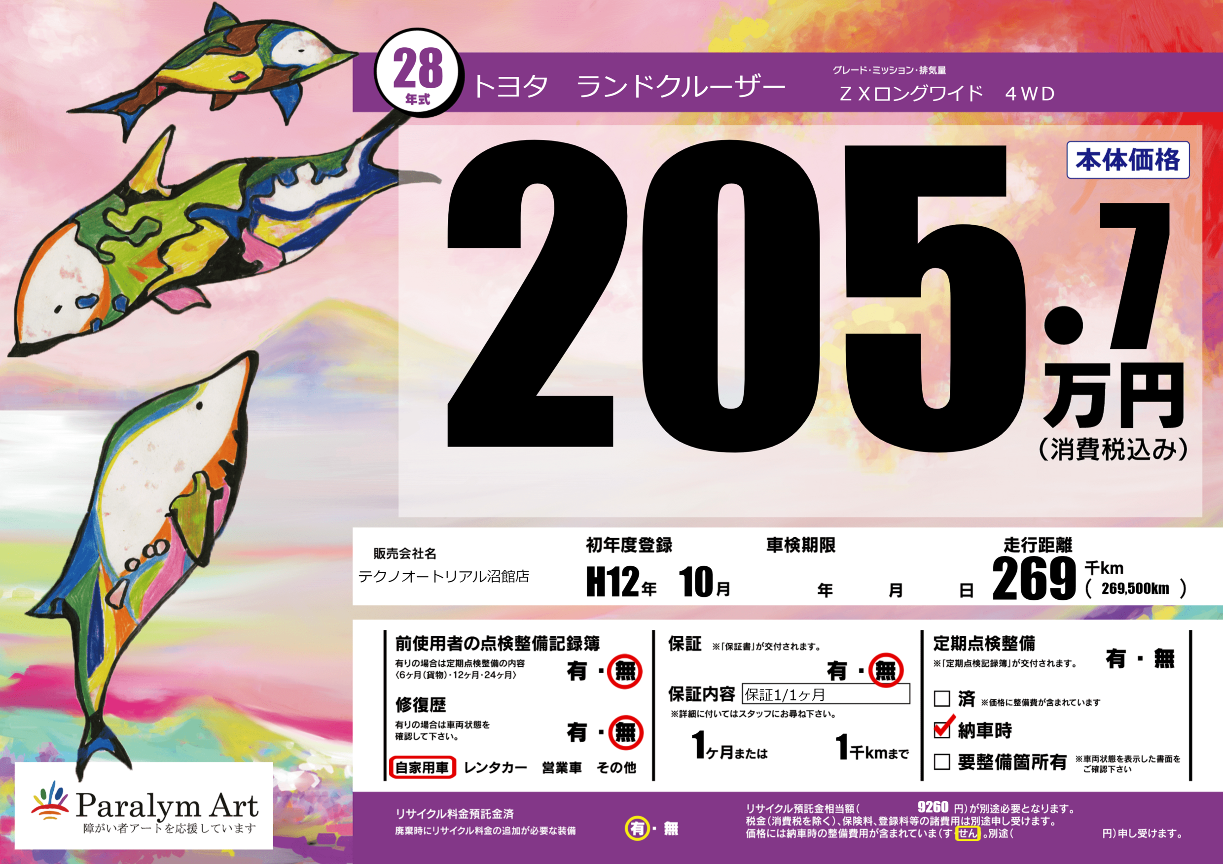 | 走行キロ | 26.9万km | 初年度登録 | H12年10月 |
