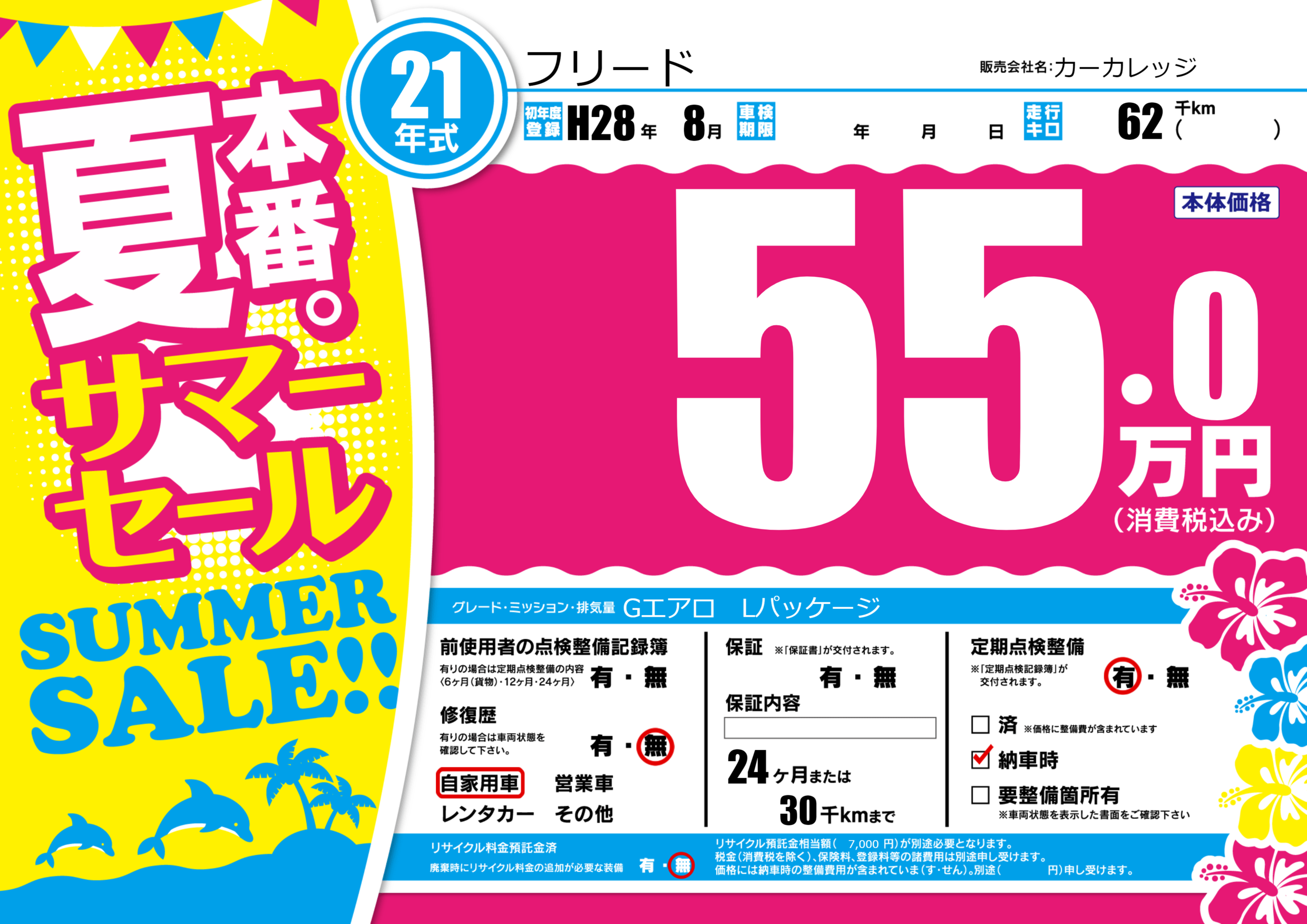 保証なし 保証内容(---) 24ヶ月または(30)千kmまで |
