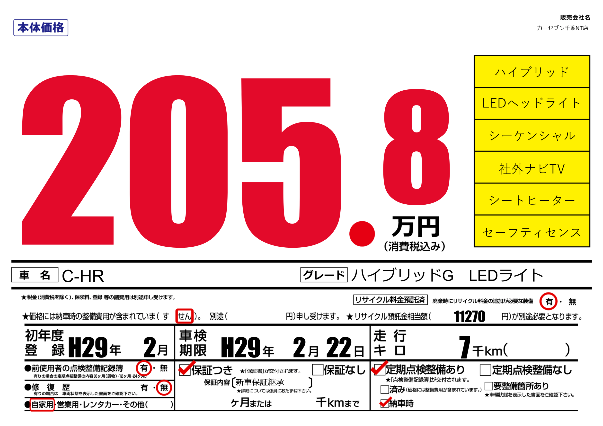 | 車検制限 | H29年 2月 22日 | ||