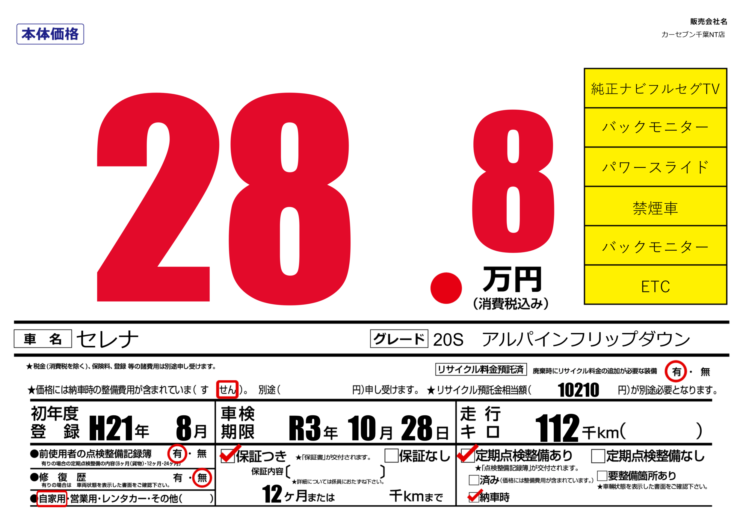 | 定期点検整備 | 定期点検整備あり 納車時あり | ||