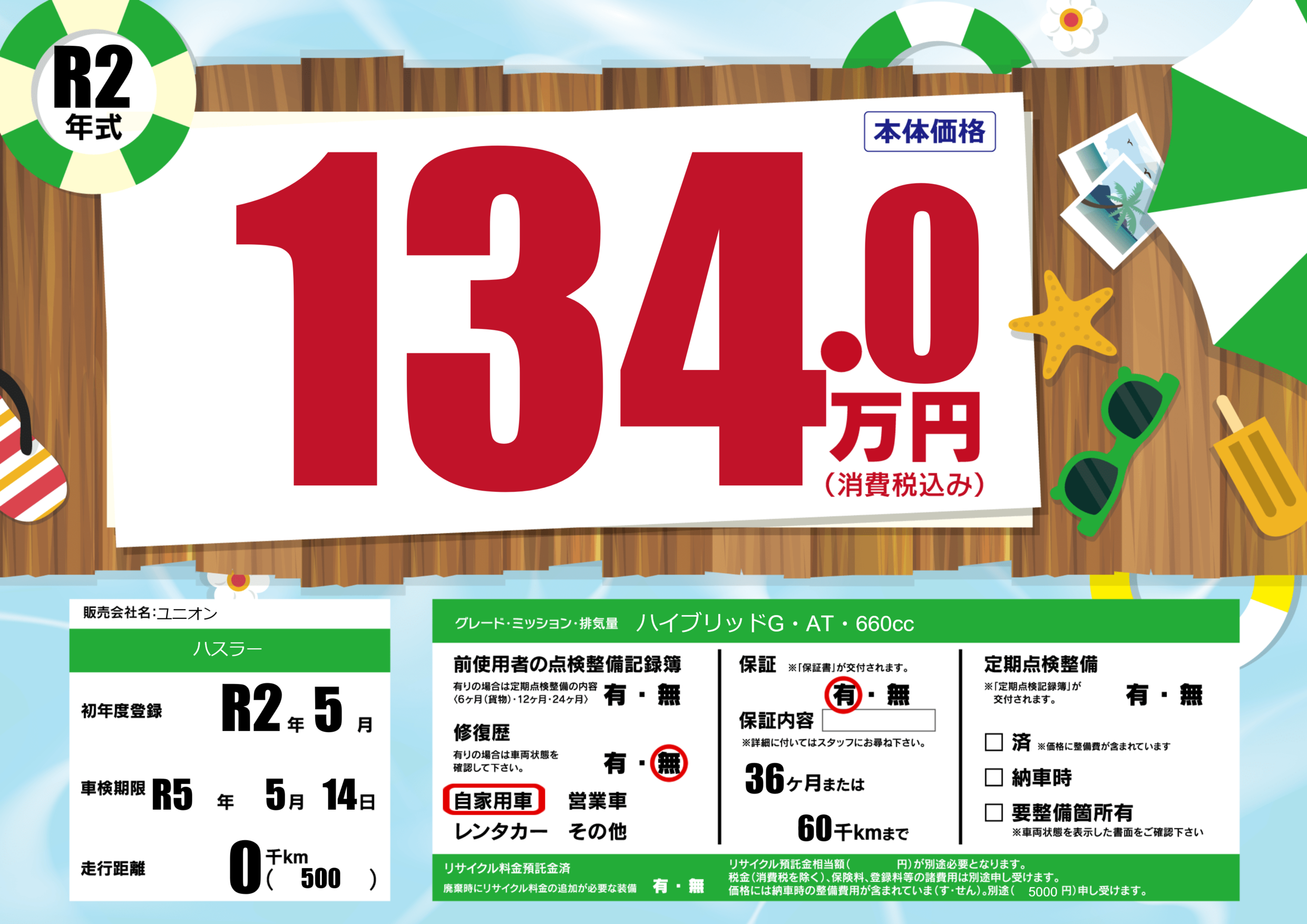 保証付き 保証内容(---) 36ヶ月または(60)千kmまで |
