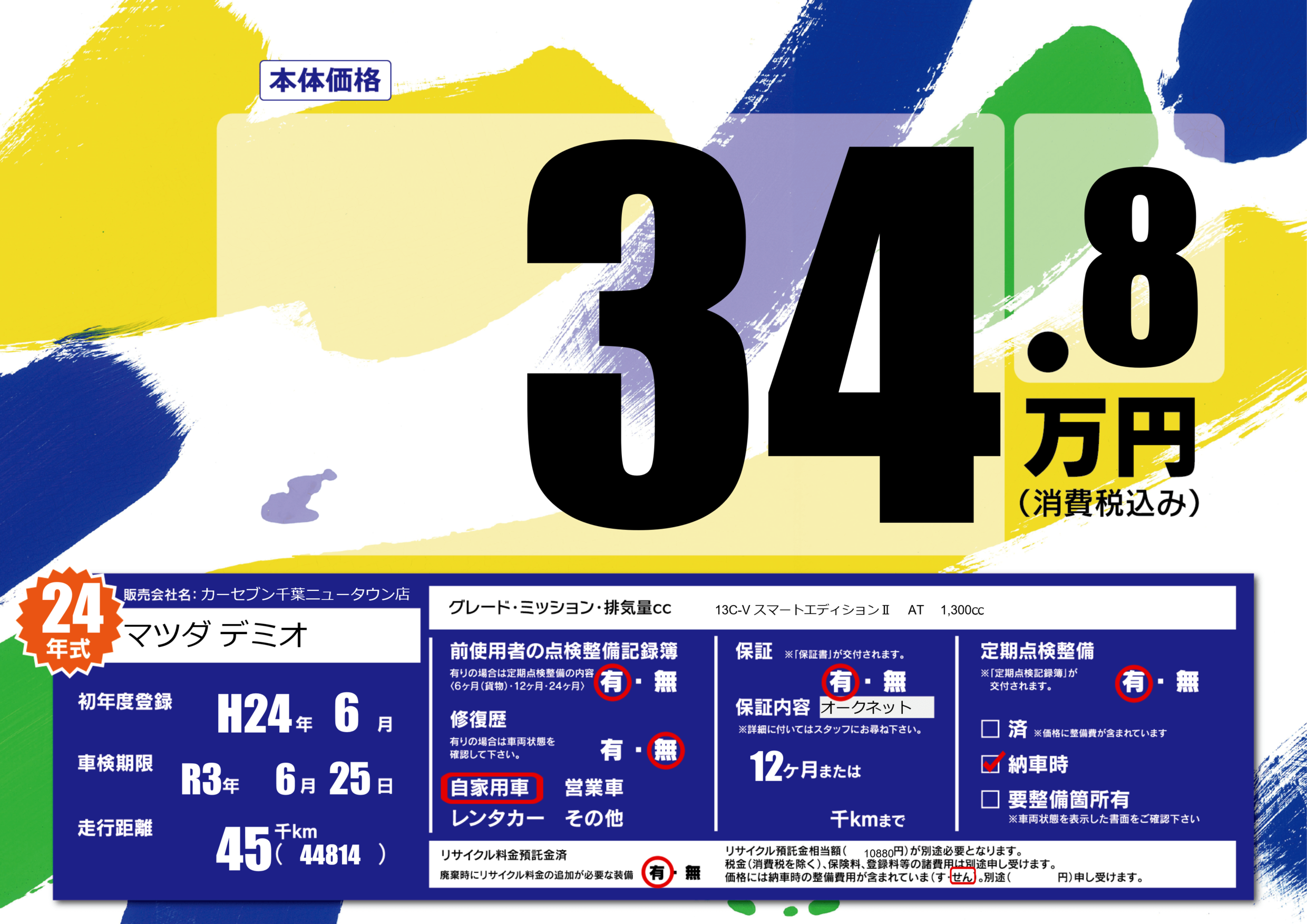 | 車名 | マツダ デミオ | グレード ミッション 排気量 |