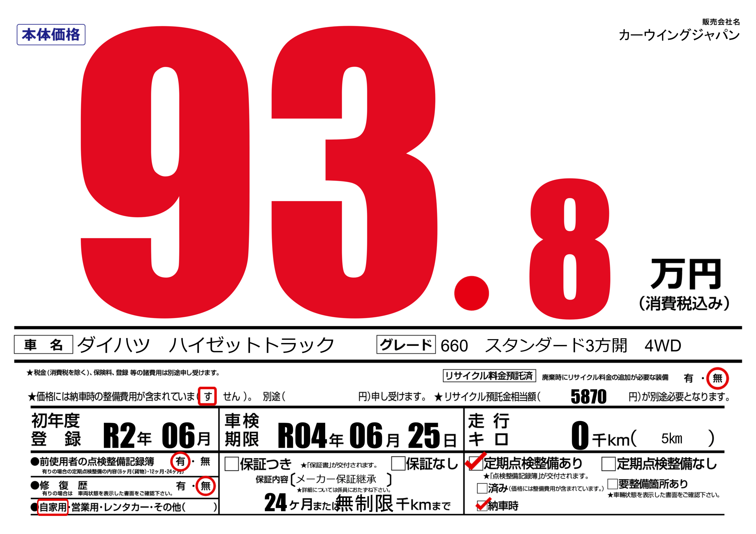 | 車検制限 | R04年 06月 25日 | ||