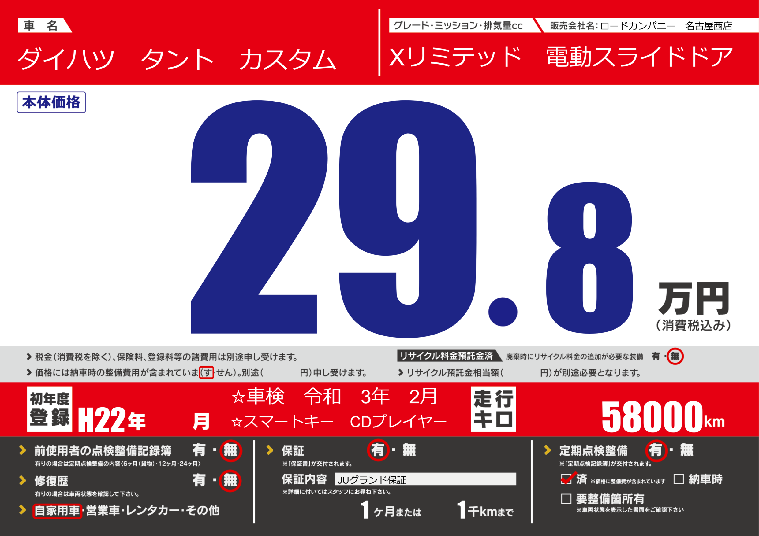 | 定期点検整備 | 定期点検整備あり 定期点検整備済み | ||