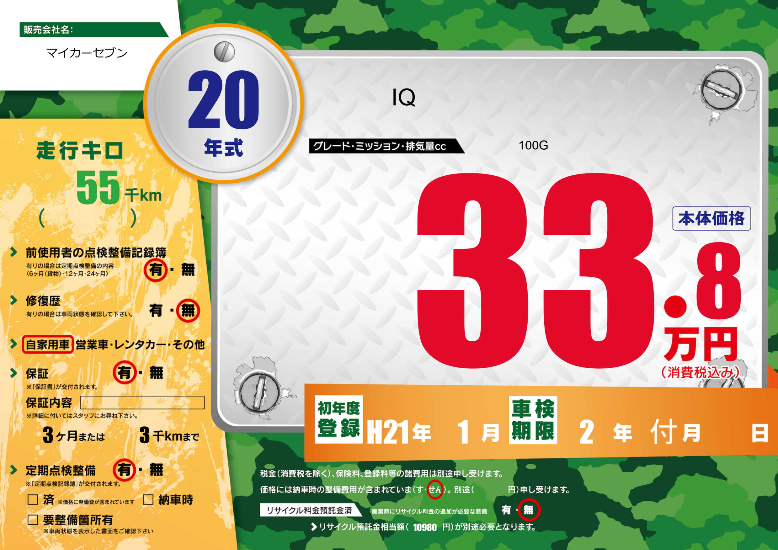 保証付き 保証内容(---) 3ヶ月または(3)千kmまで |