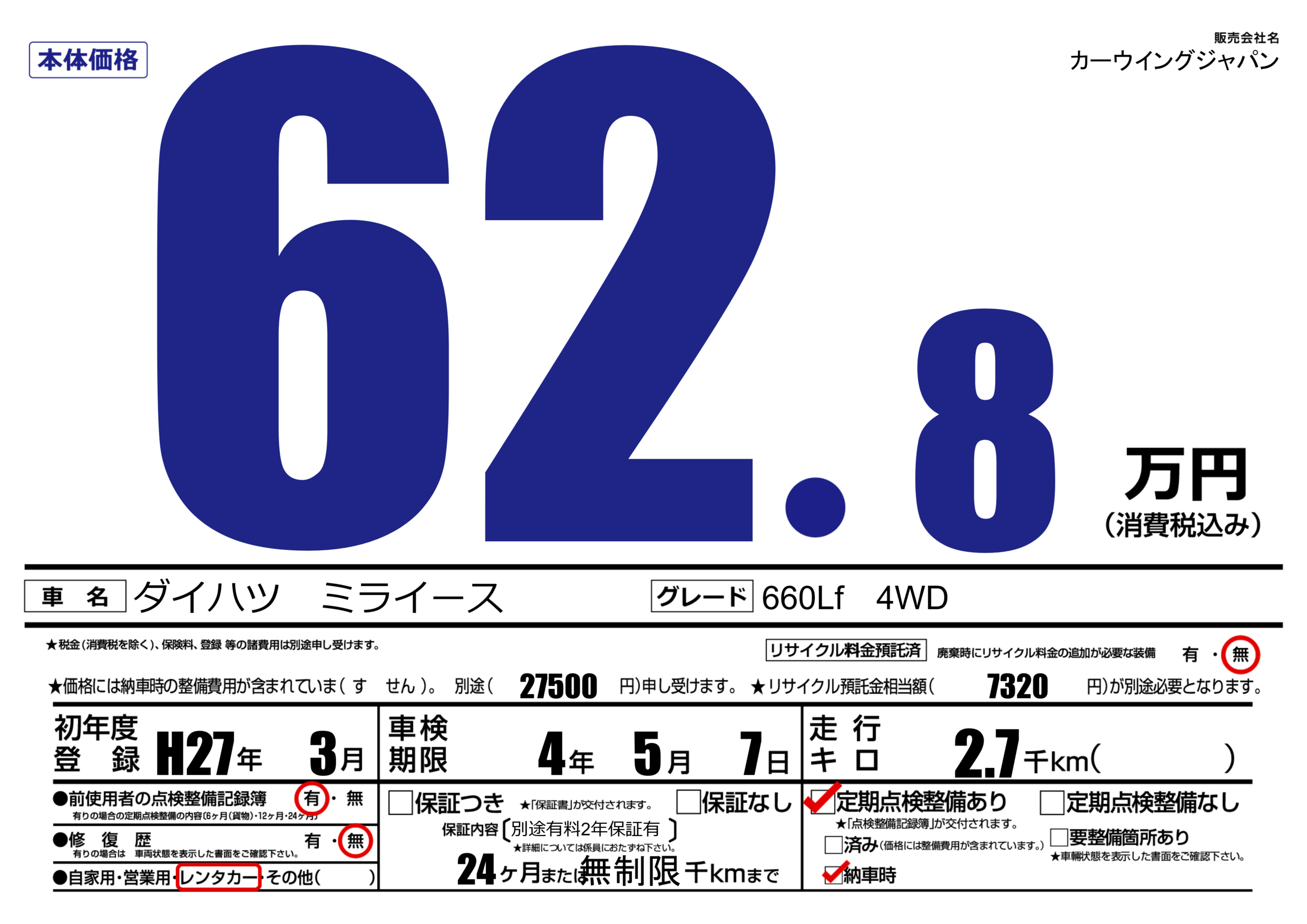 | 初年度登録 | H27年3月 | ||