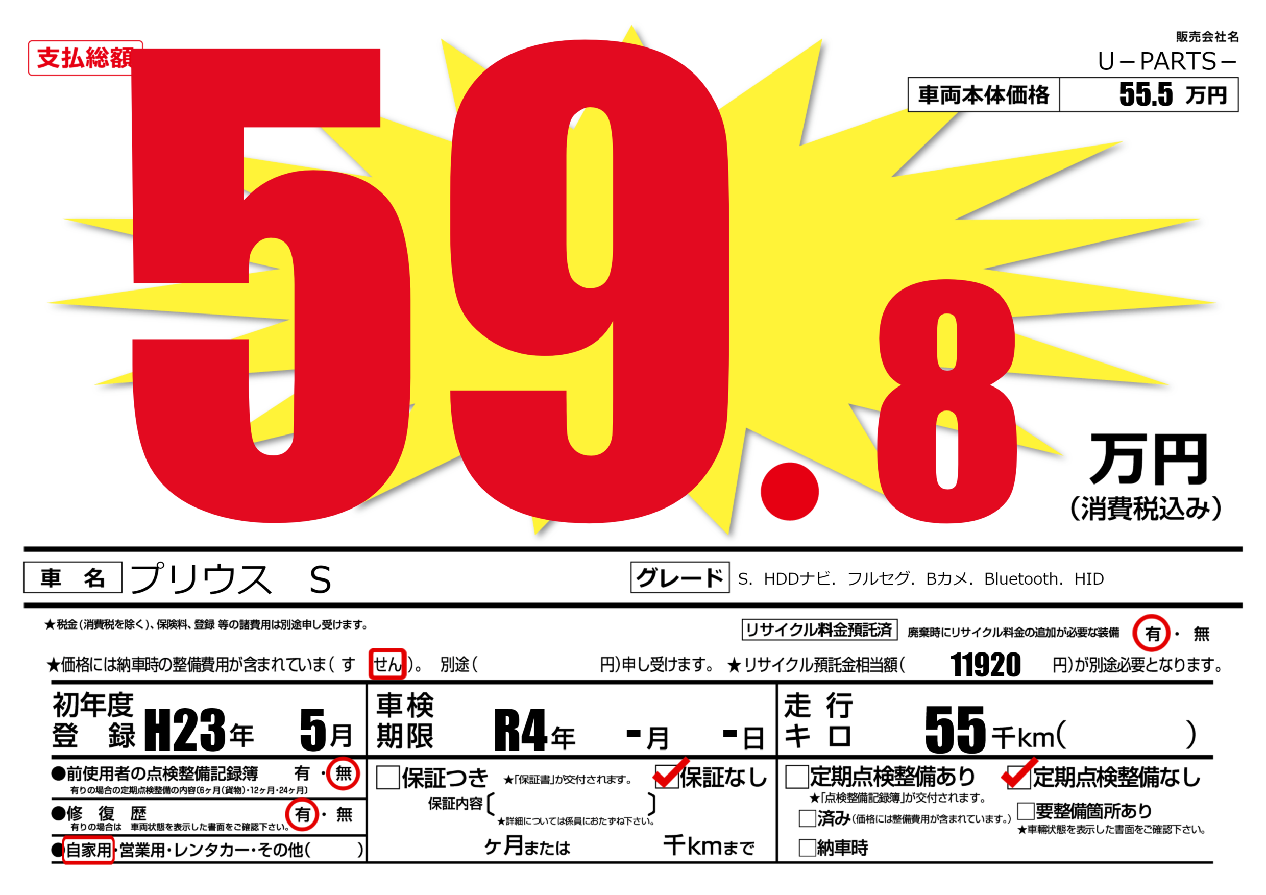 なし | 車検制限 | R4年-月-月 |