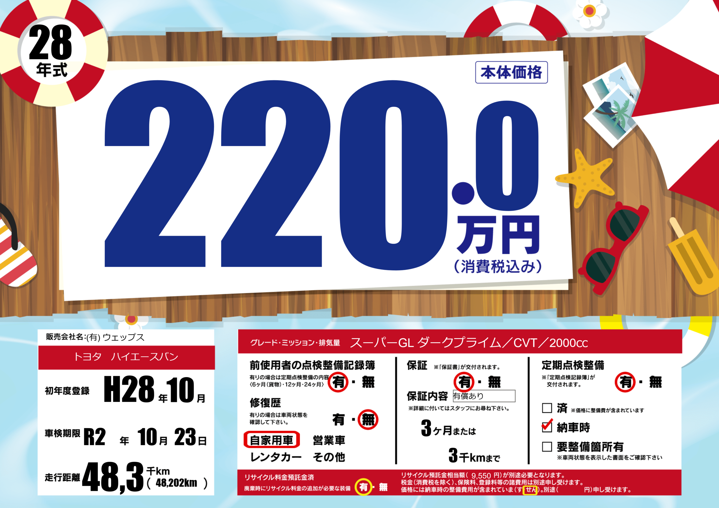 | 走行キロ | 4.8万km | 初年度登録 | H28年10月 |