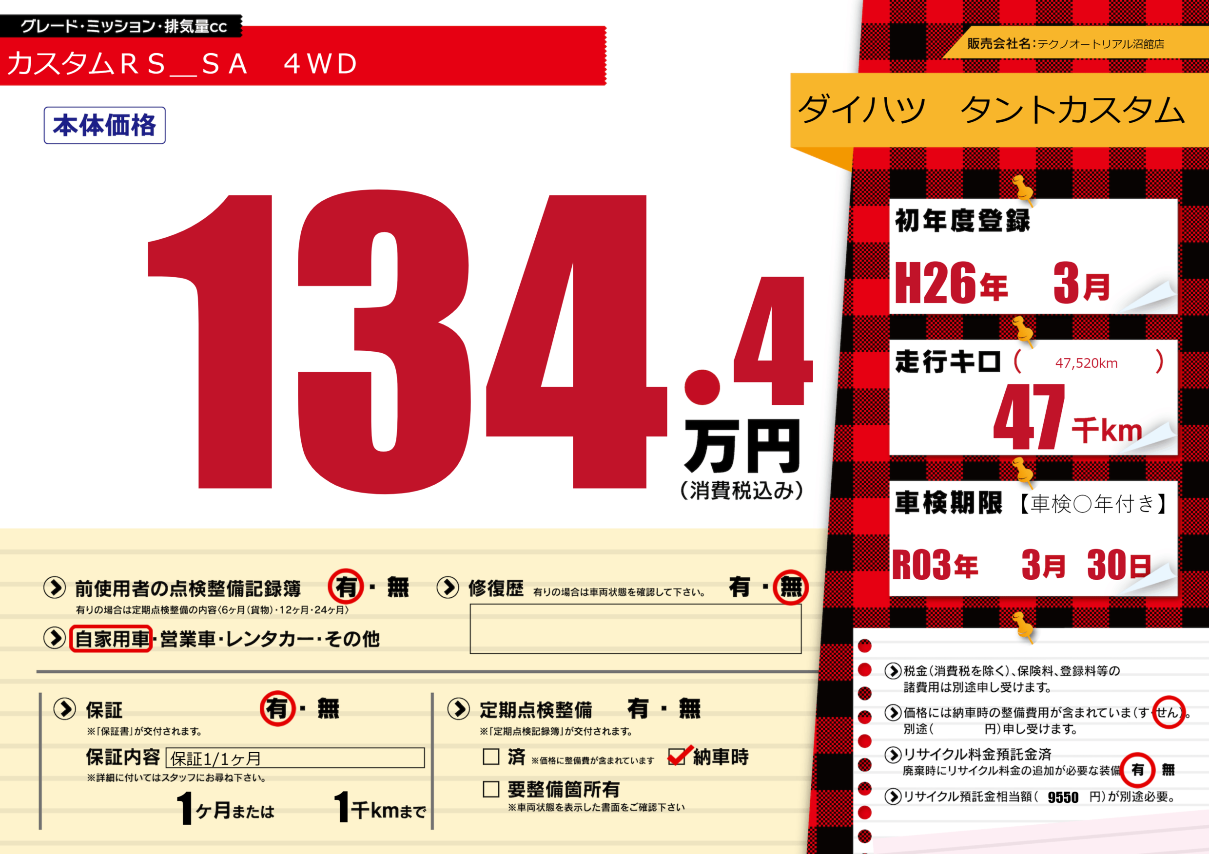 あり | 車検制限 | R03年3月30月 |