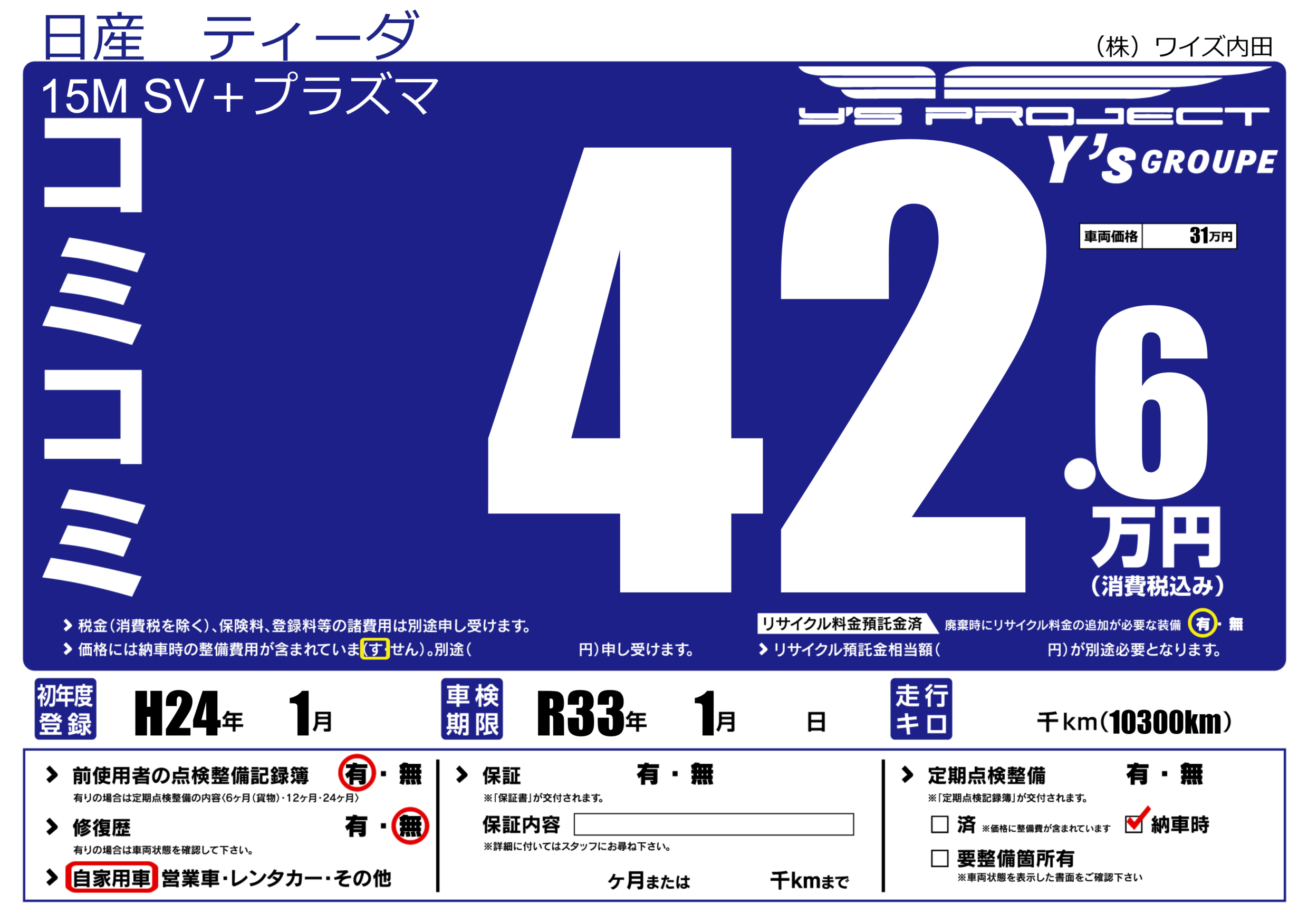 | 車名 | 日産 ティーダ | グレード ミッション 排気量 |