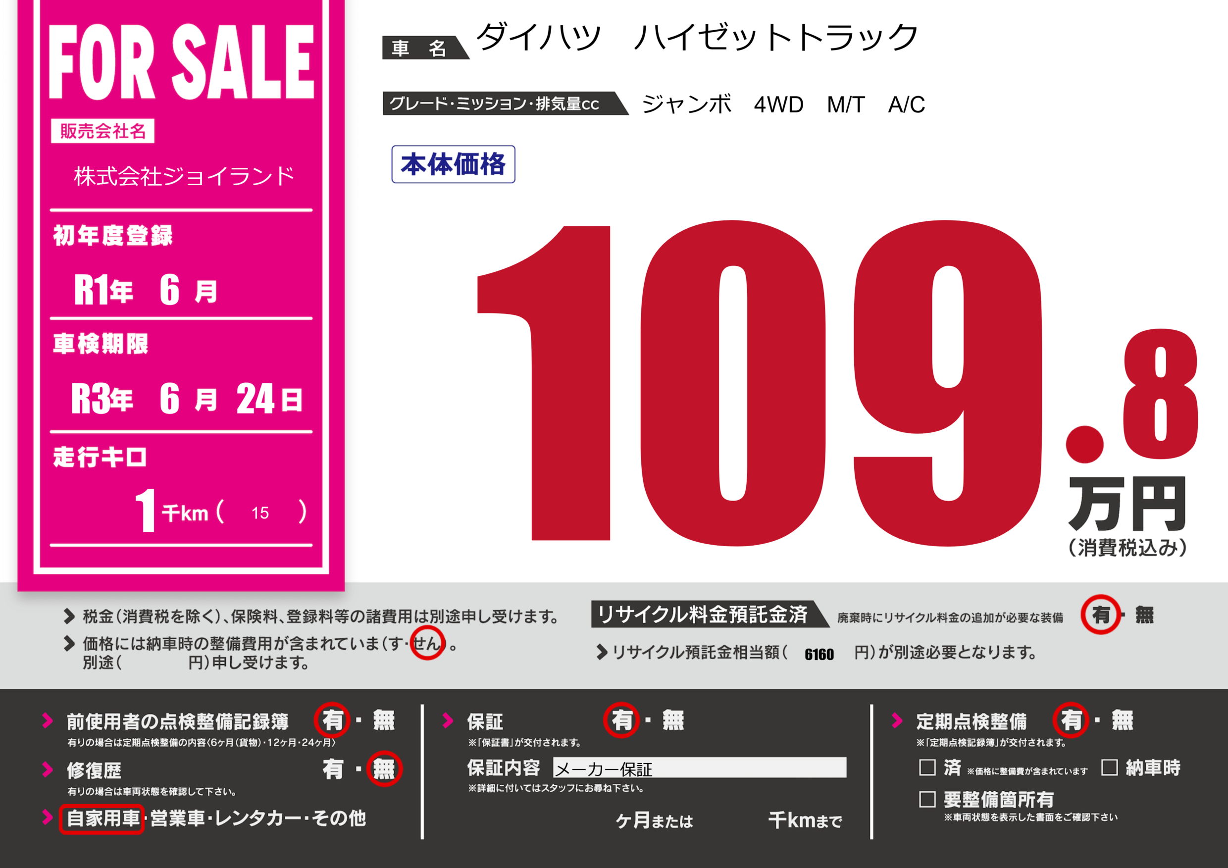 保証付き 保証内容(メーカー保証) ---ヶ月または()千kmまで |