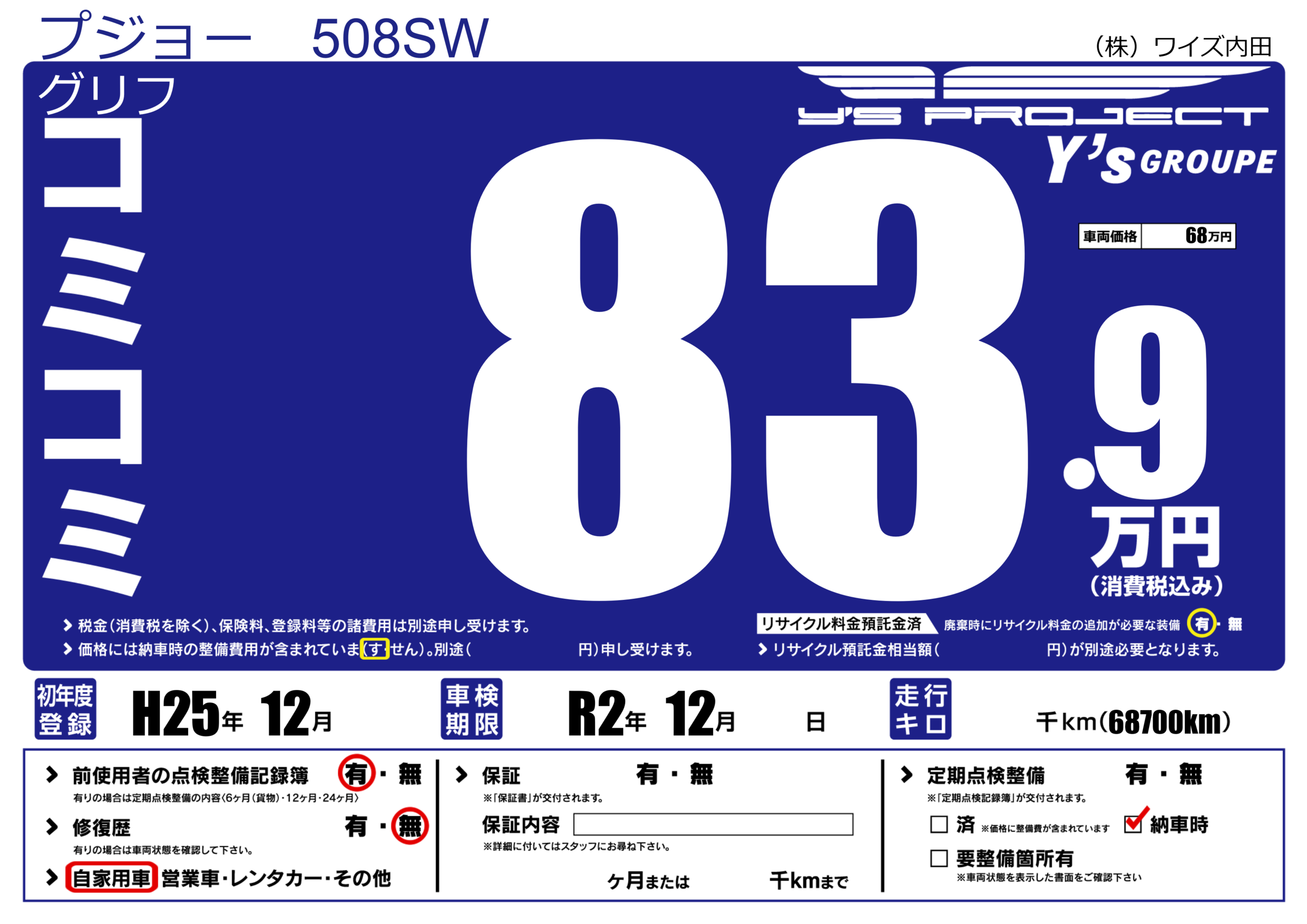 | 車検制限 | R2年 12月 - 日 | ||