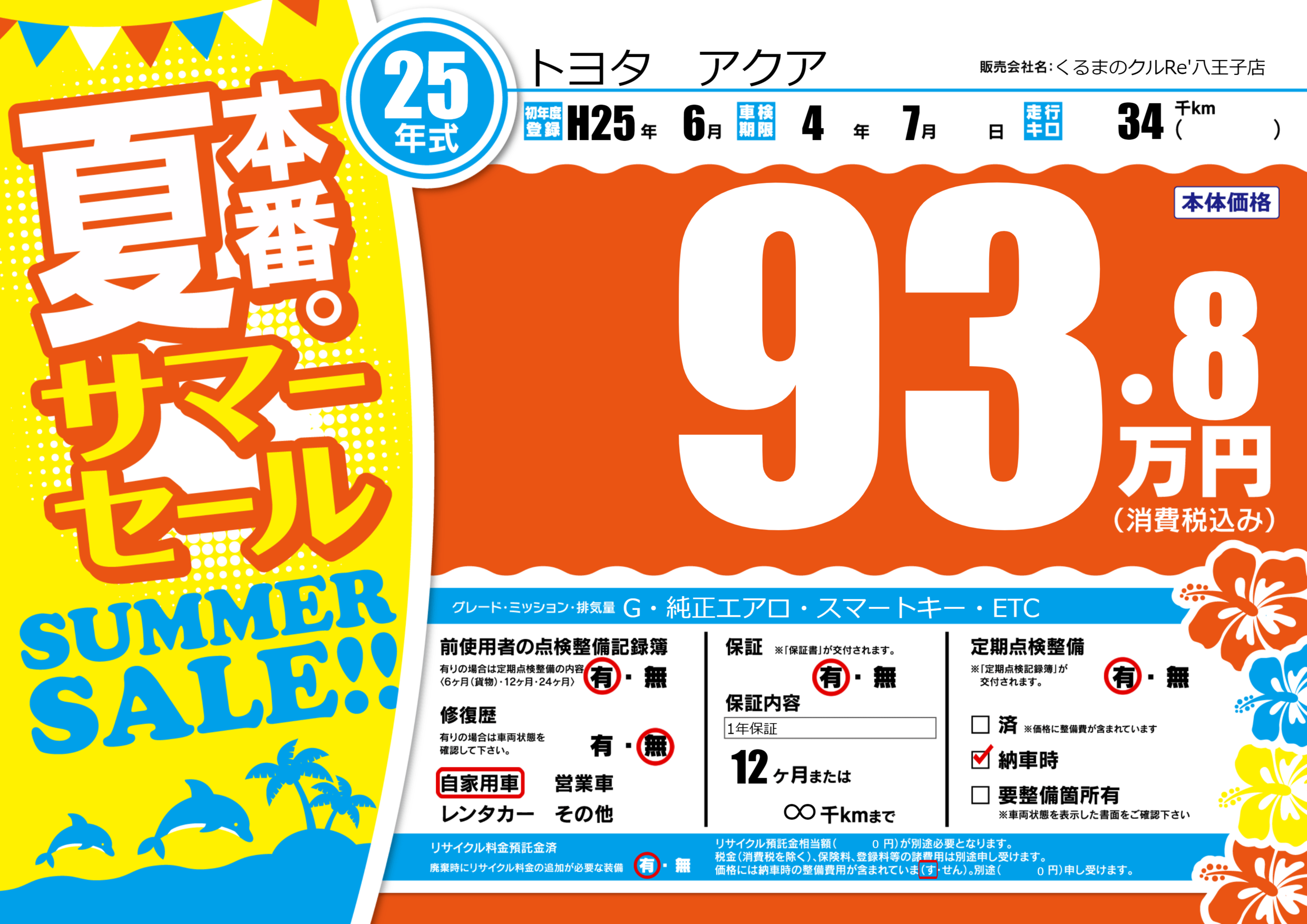 | 走行キロ | 3.4万km | 初年度登録 | H25年6月 |