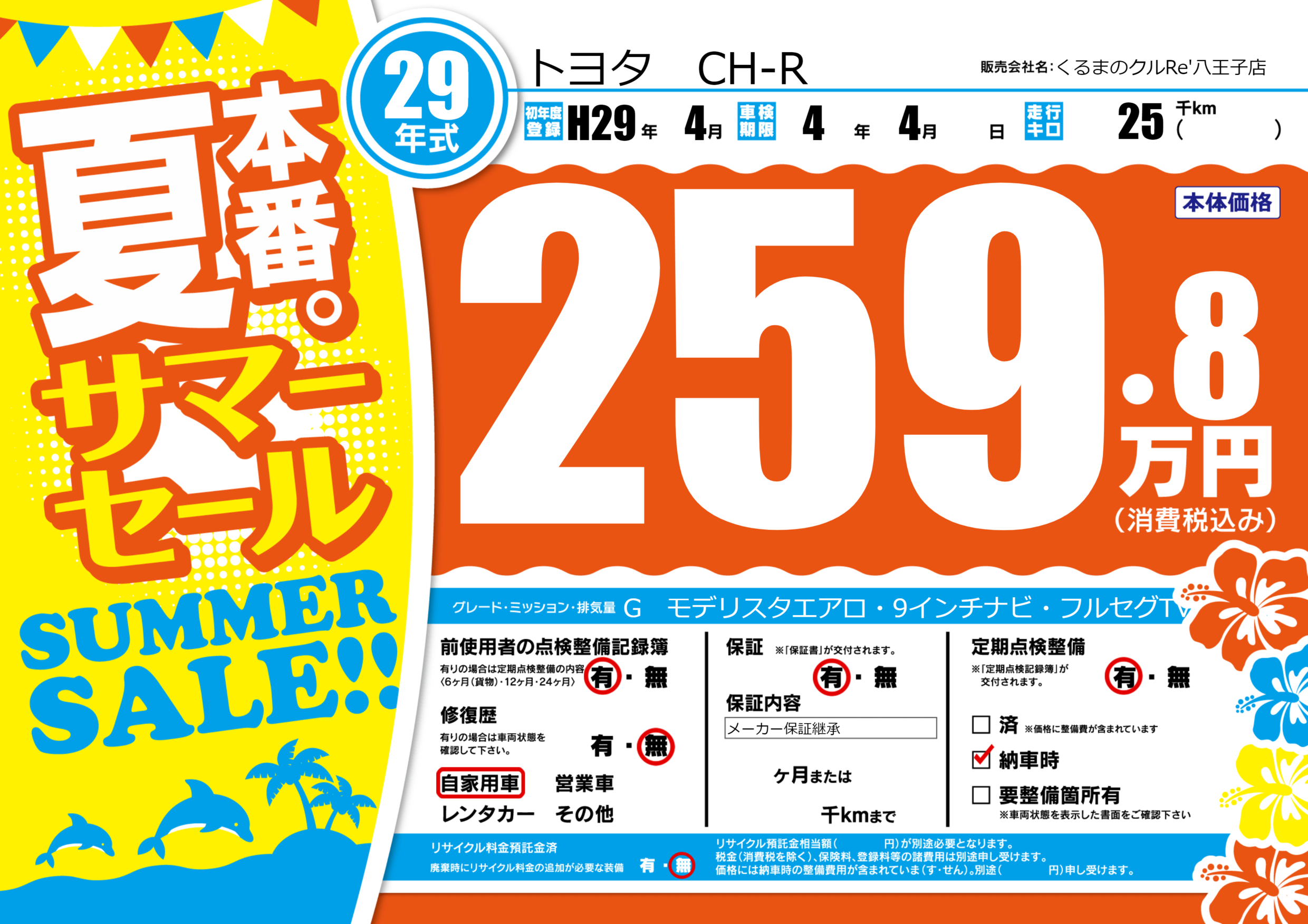 | 定期点検整備 | 定期点検整備あり 納車時あり | ||