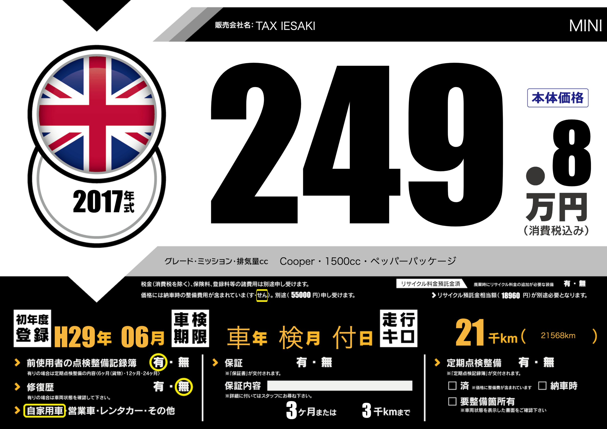 | 走行キロ | 2.1万km | 初年度登録 | H29年06月 |
