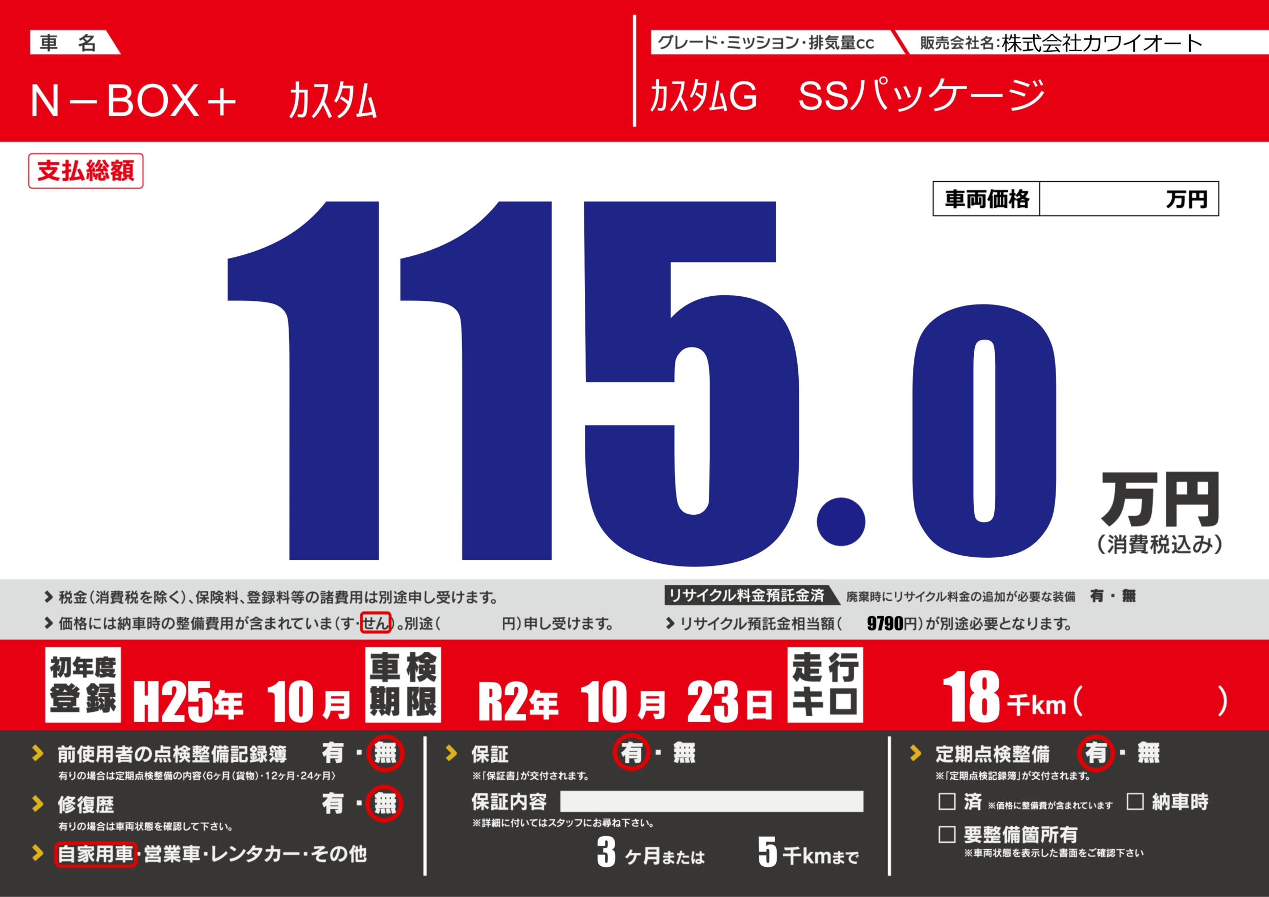 | 走行キロ | 1.8万km | 初年度登録 | H25年10月 |