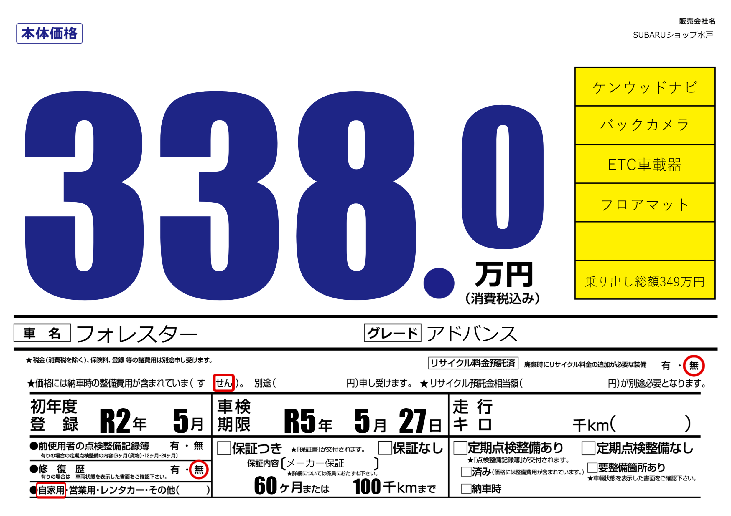 なし | 車検制限 | R5年5月27月 |
