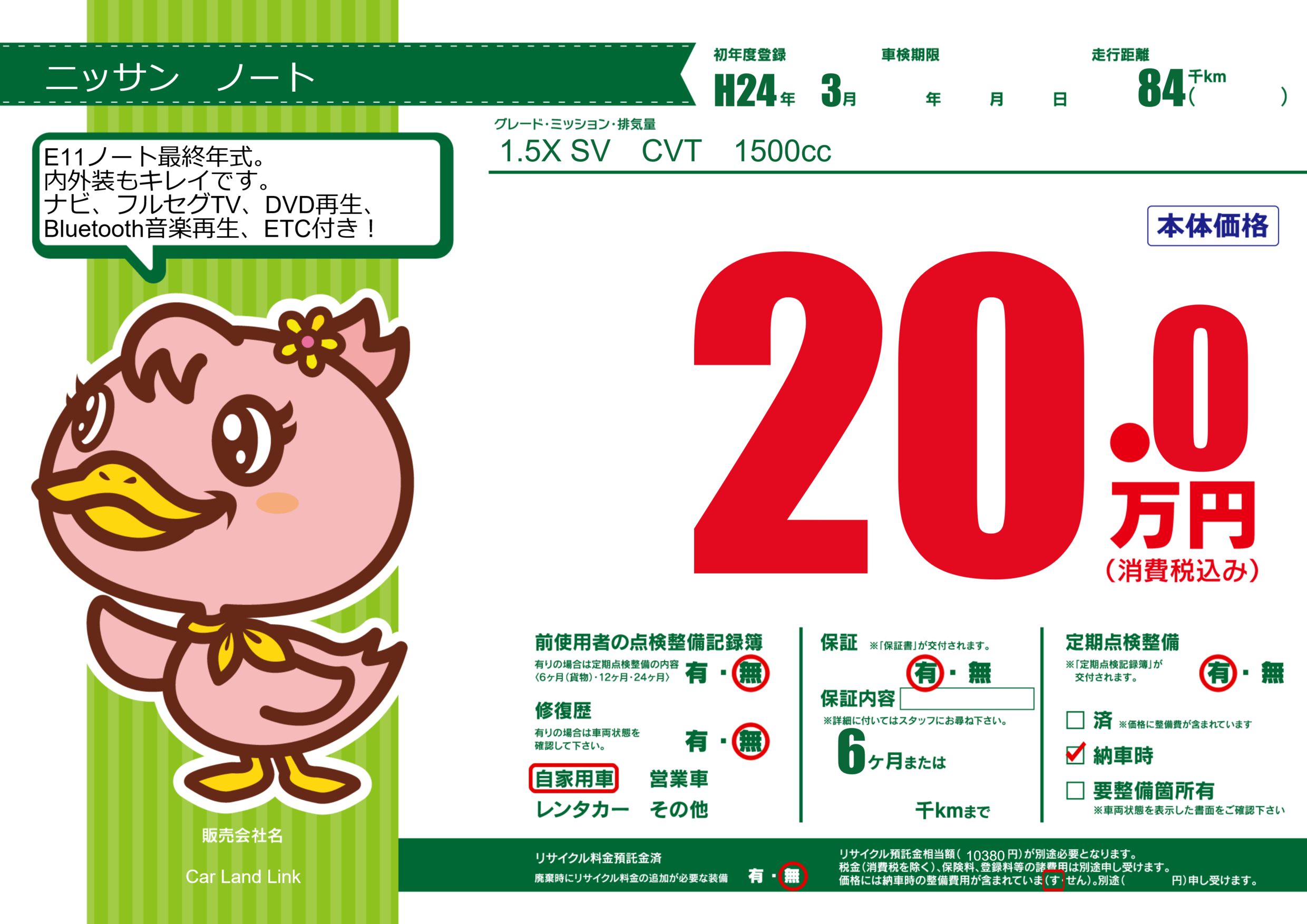 | 定期点検整備 | 定期点検整備あり 納車時あり | ||