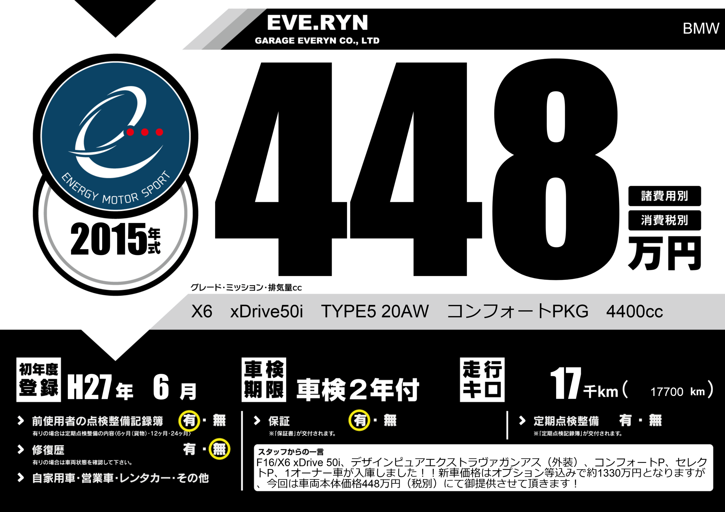 X6 xDrive50i TYPE5 20AW コンフォートPKG 4400cc |