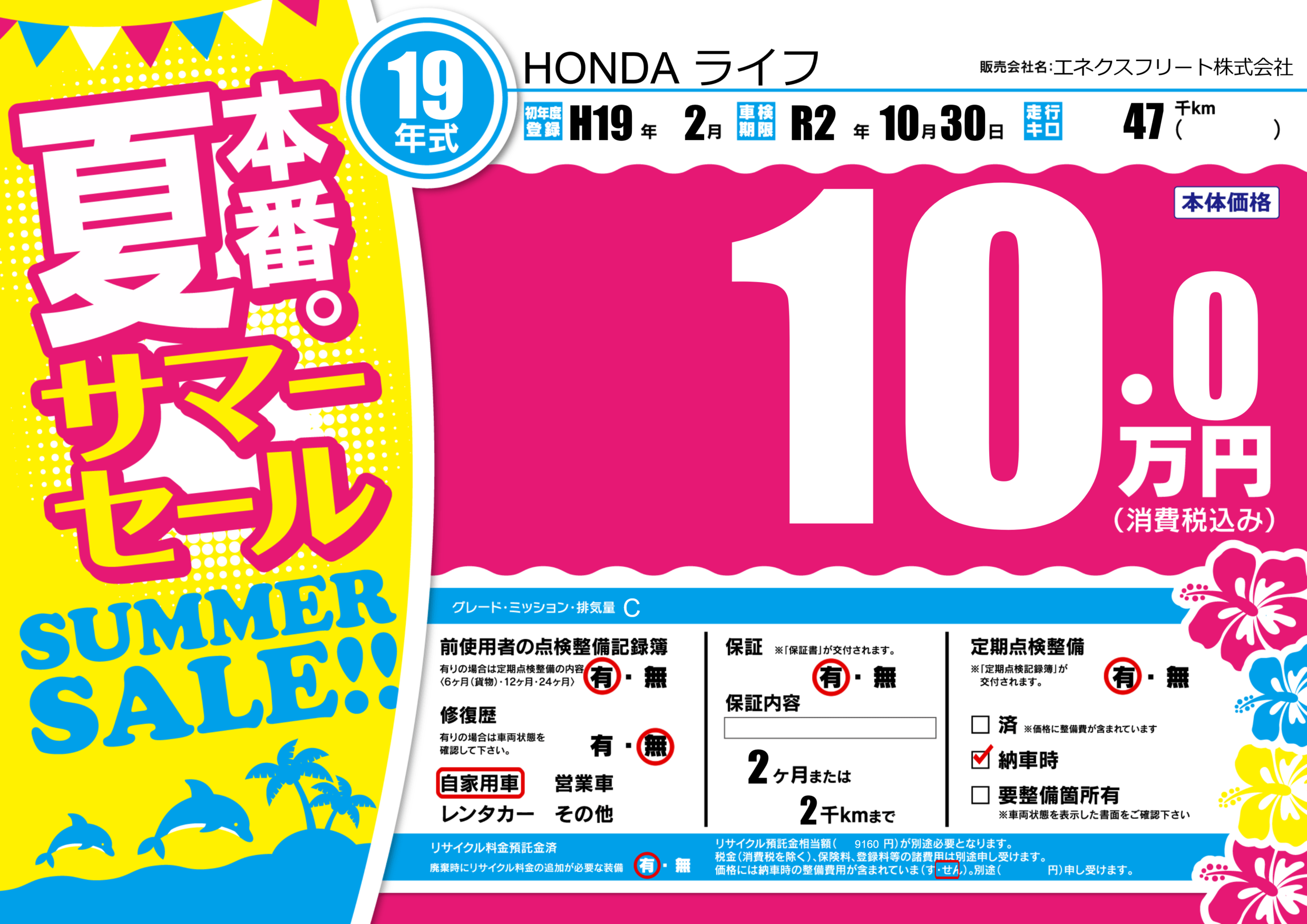 | 車名 | HONDA ライフ | グレード ミッション 排気量 |