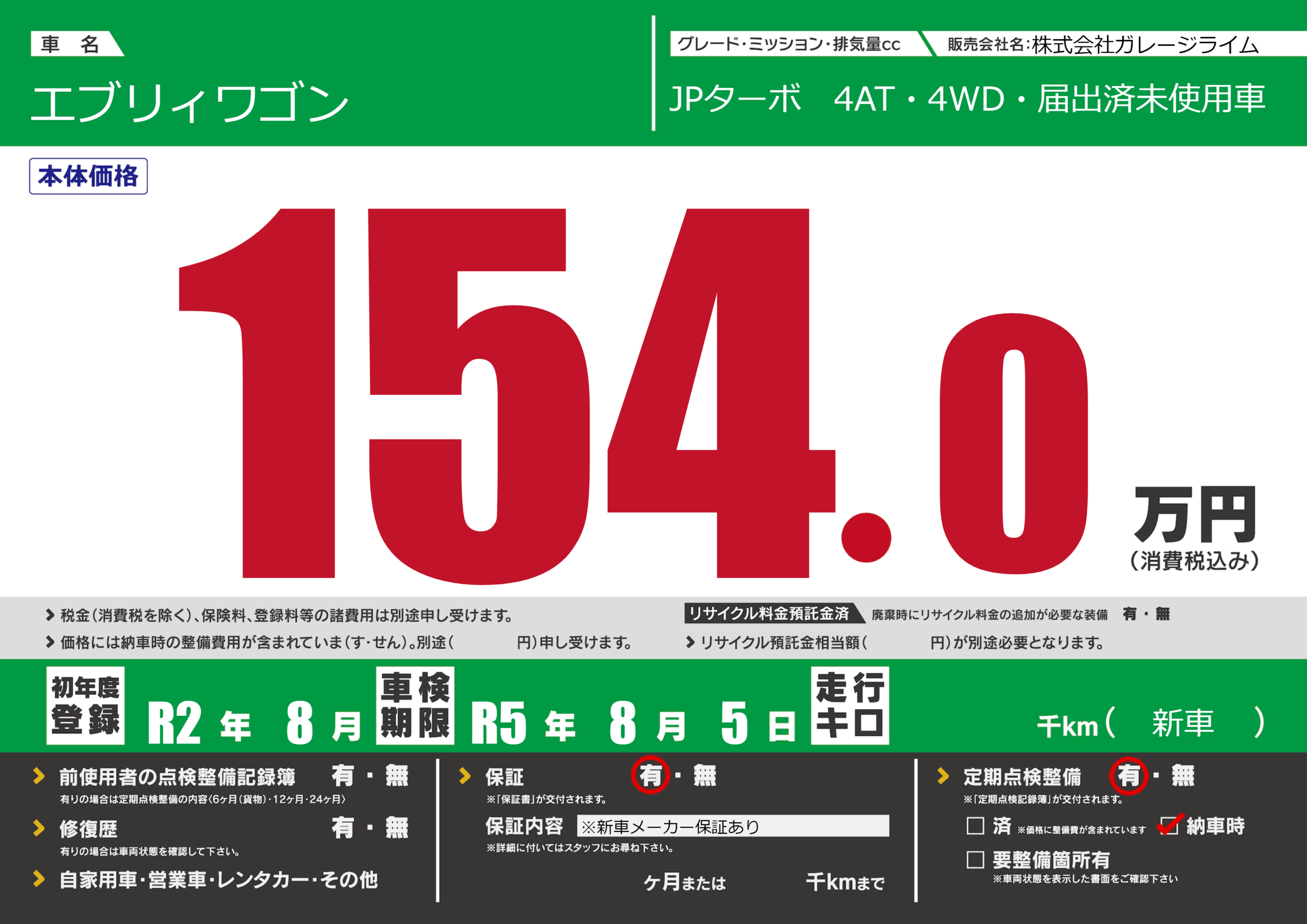 なし | 車検制限 | R5年8月5月 |