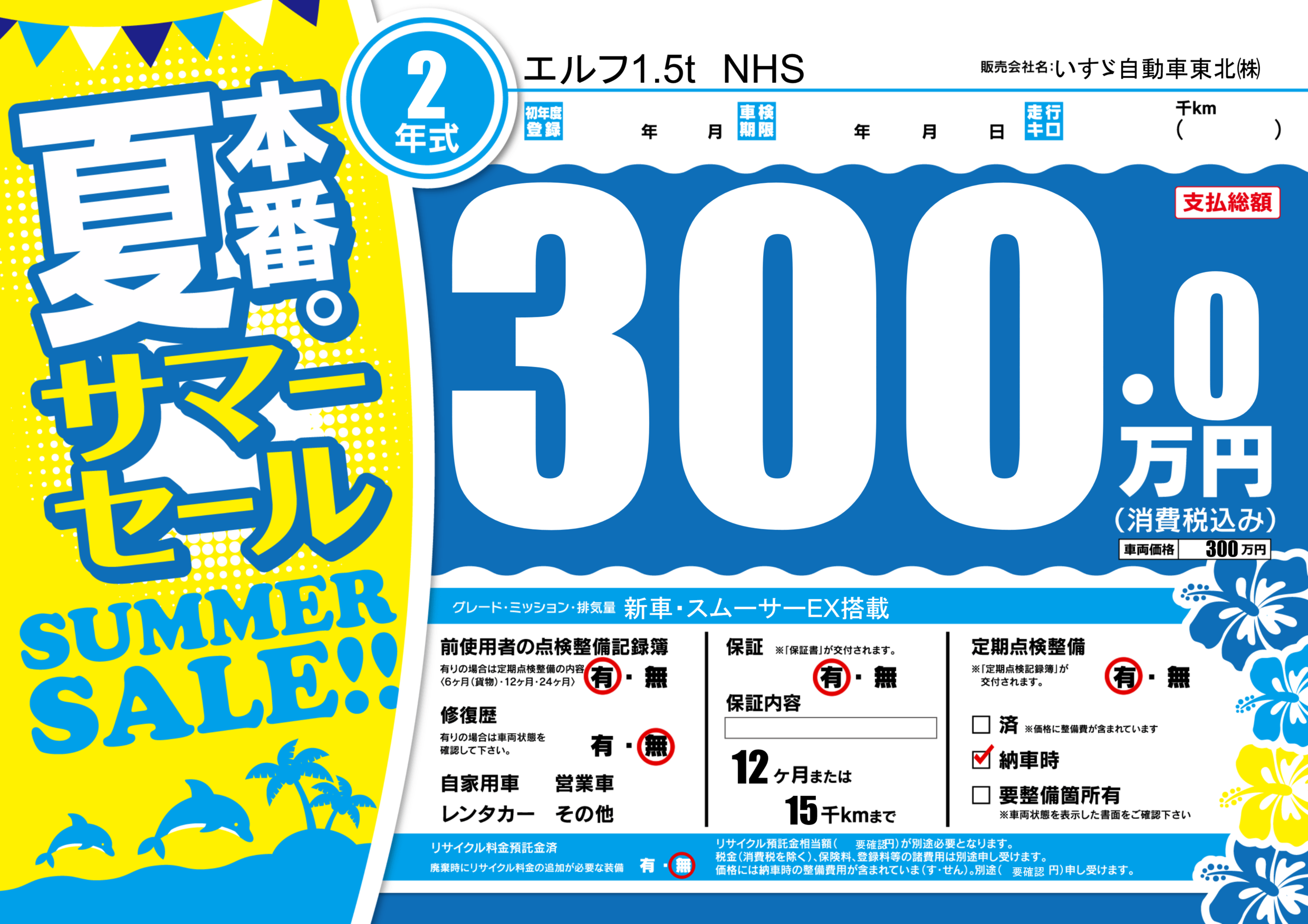 | 車名 | エルフ1.5t NHS | グレード ミッション 排気量 |