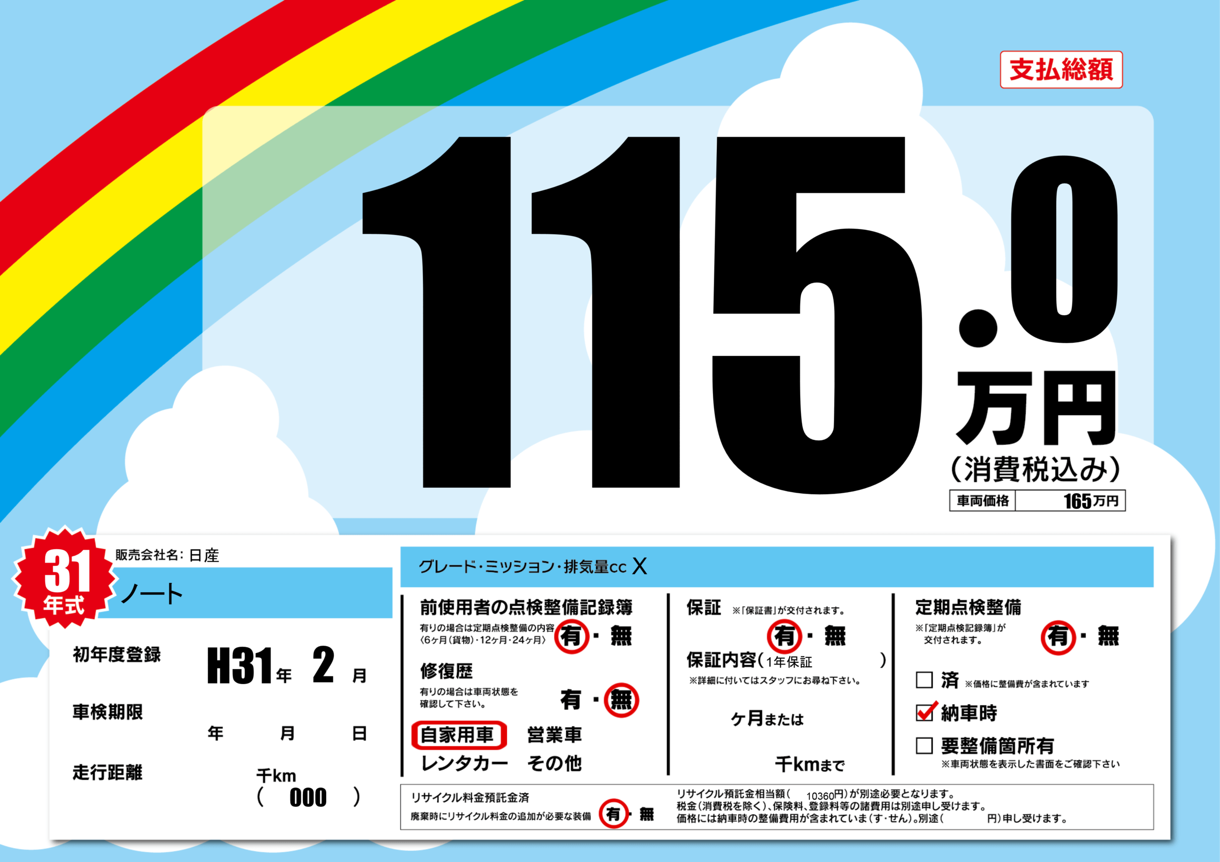 | 定期点検整備 | 定期点検整備あり 納車時あり | ||