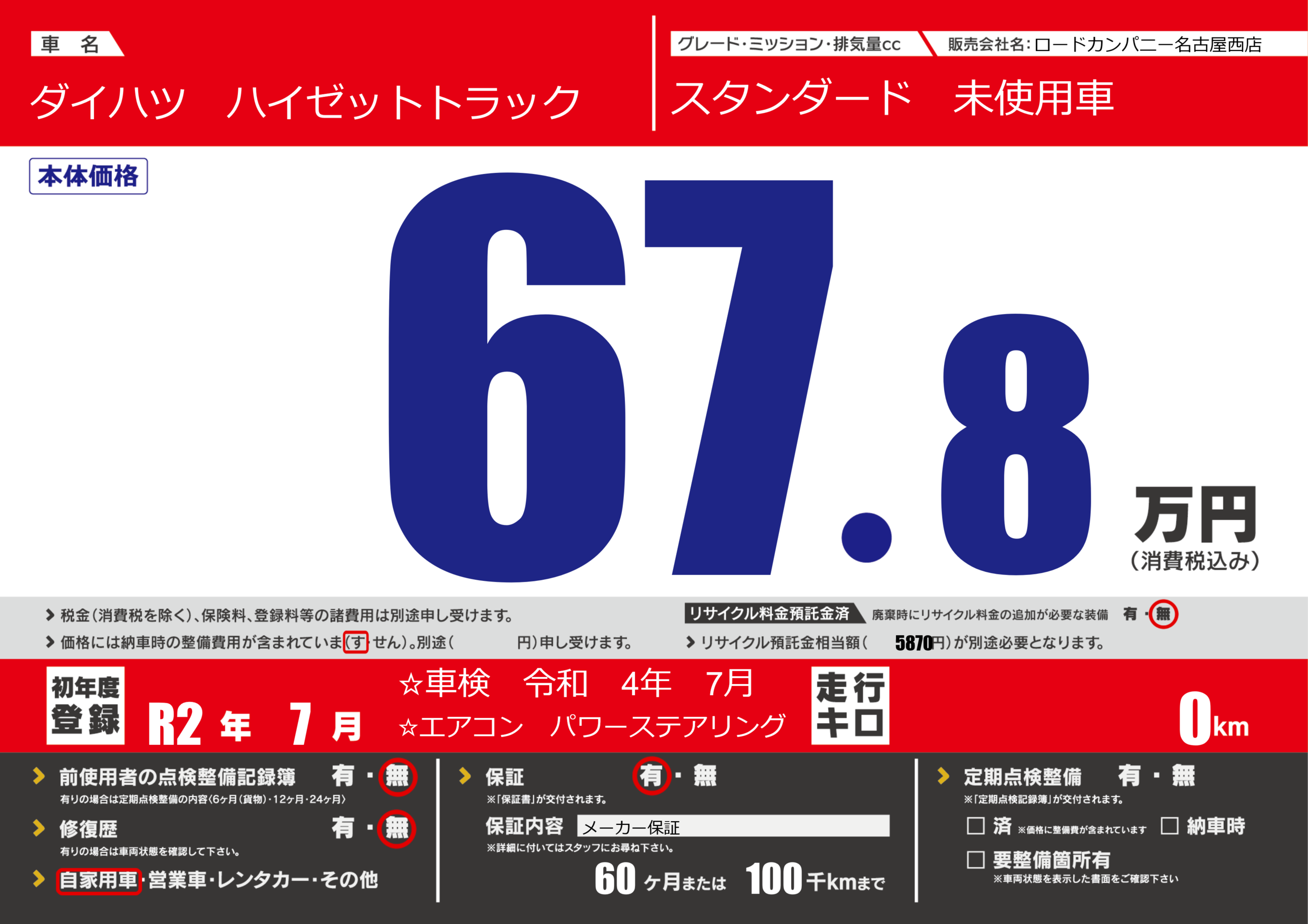 保証付き 保証内容(メーカー保証) 60ヶ月または(100)千kmまで |