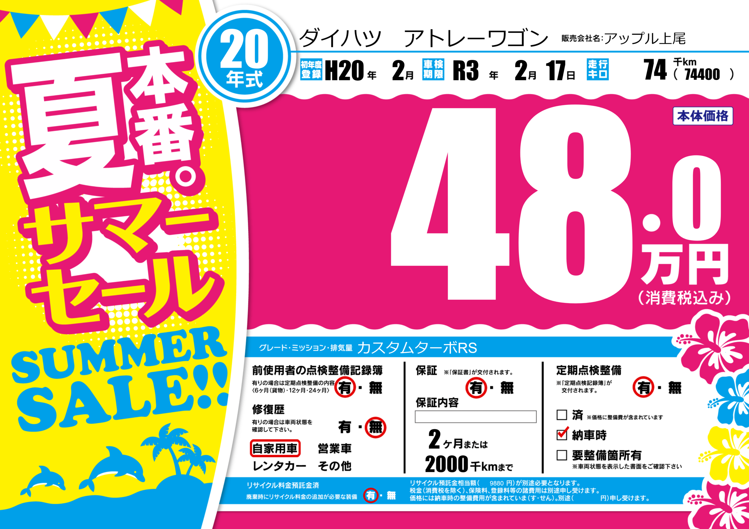 | 車名 | ダイハツ アトレーワゴン | グレード ミッション 排気量 |