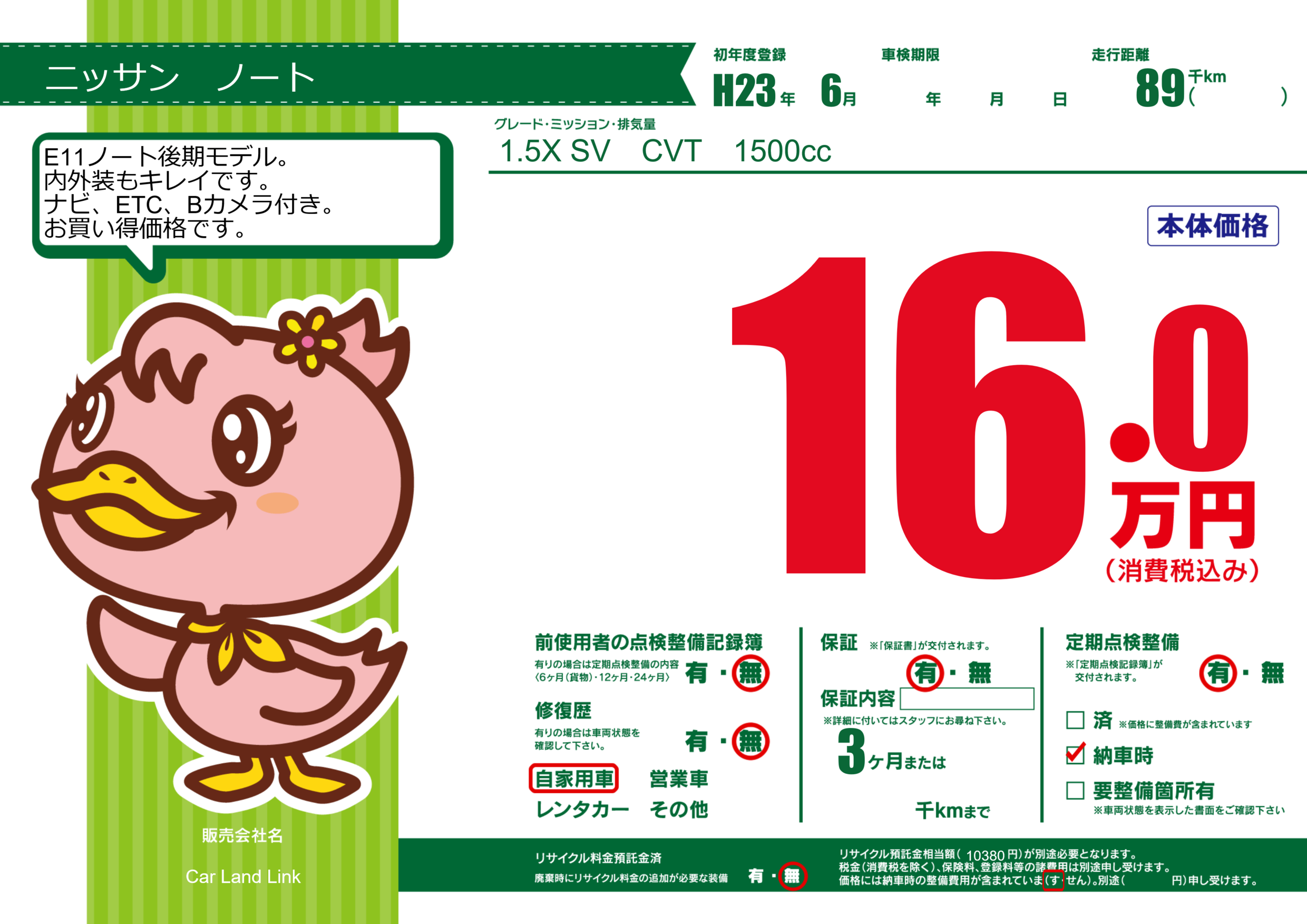 | 定期点検整備 | 定期点検整備あり 納車時あり | ||