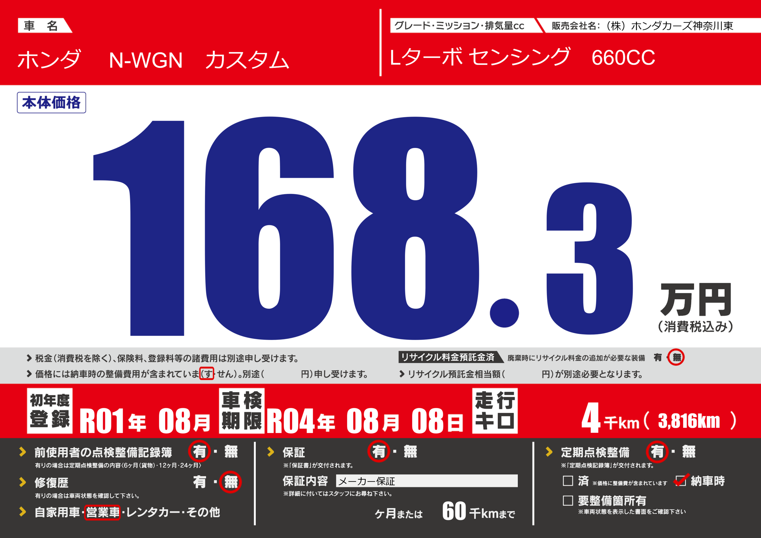 あり | 車検制限 | R04年08月08月 |