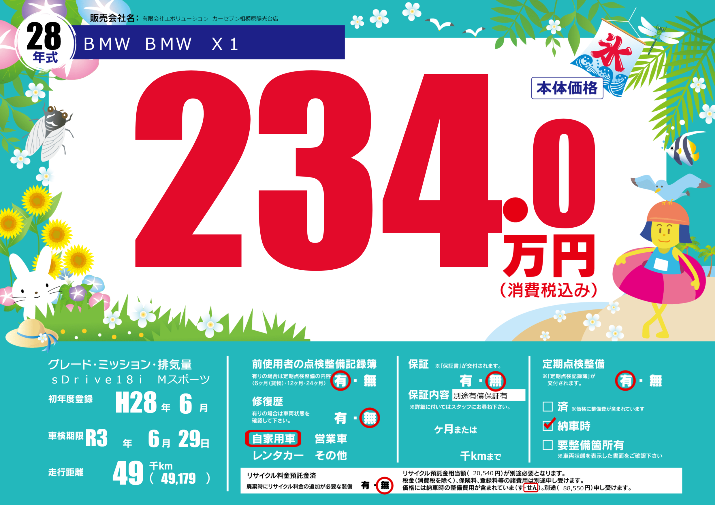 | 車名 | BMW BMW X1 | グレード ミッション 排気量 |