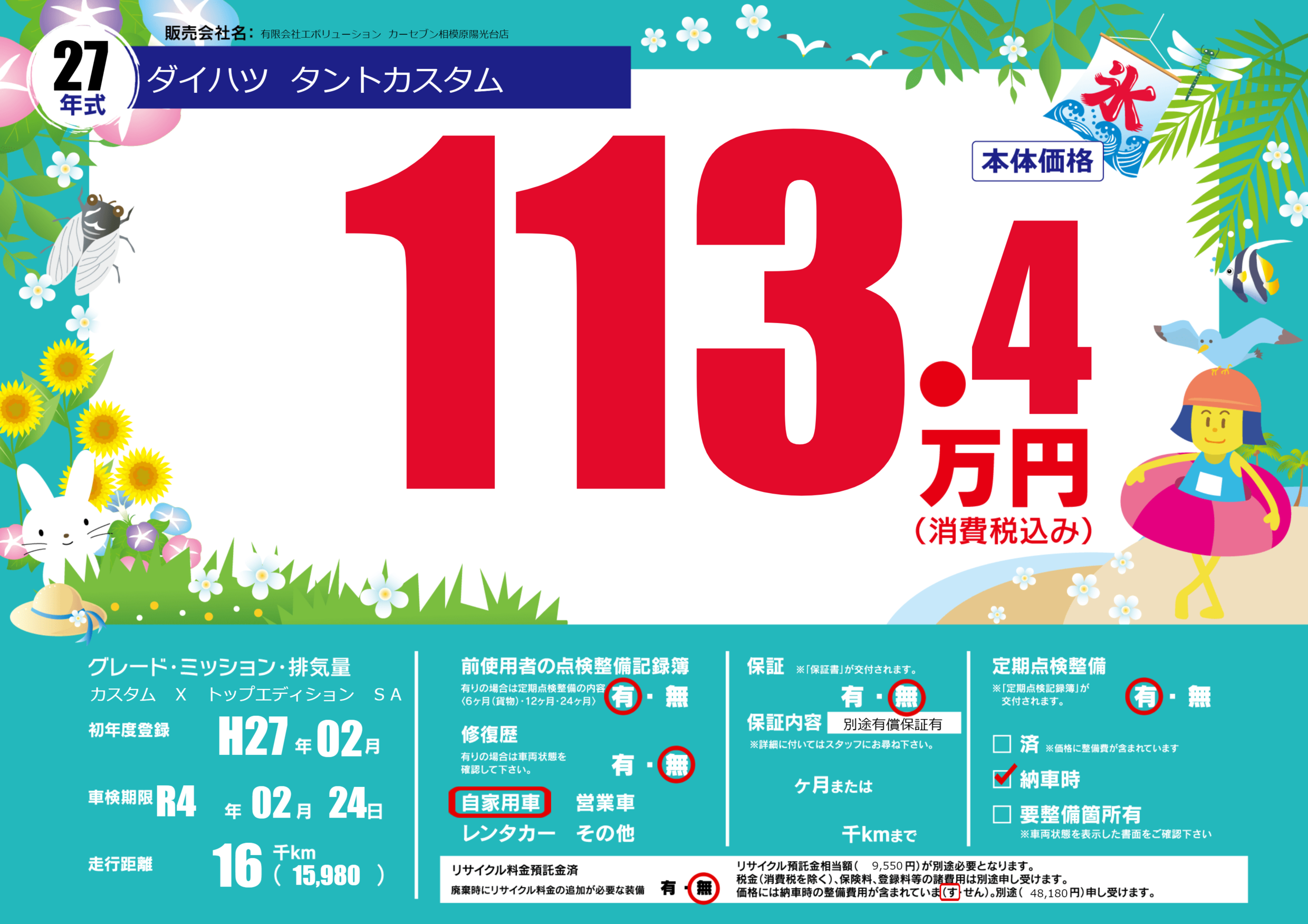 | 定期点検整備 | 定期点検整備あり 納車時あり | ||