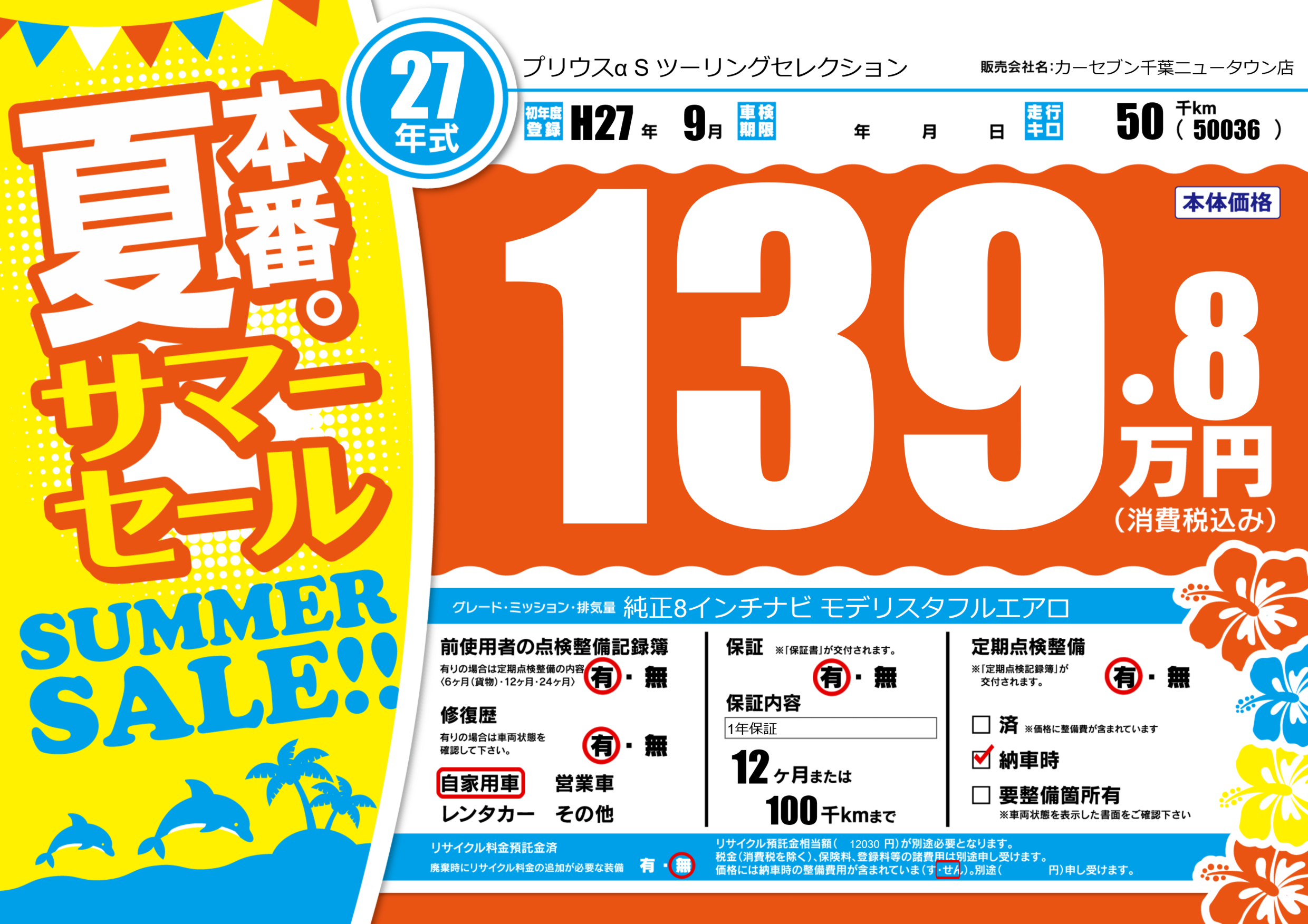 | 走行キロ | 5万km | 初年度登録 | H27年9月 |