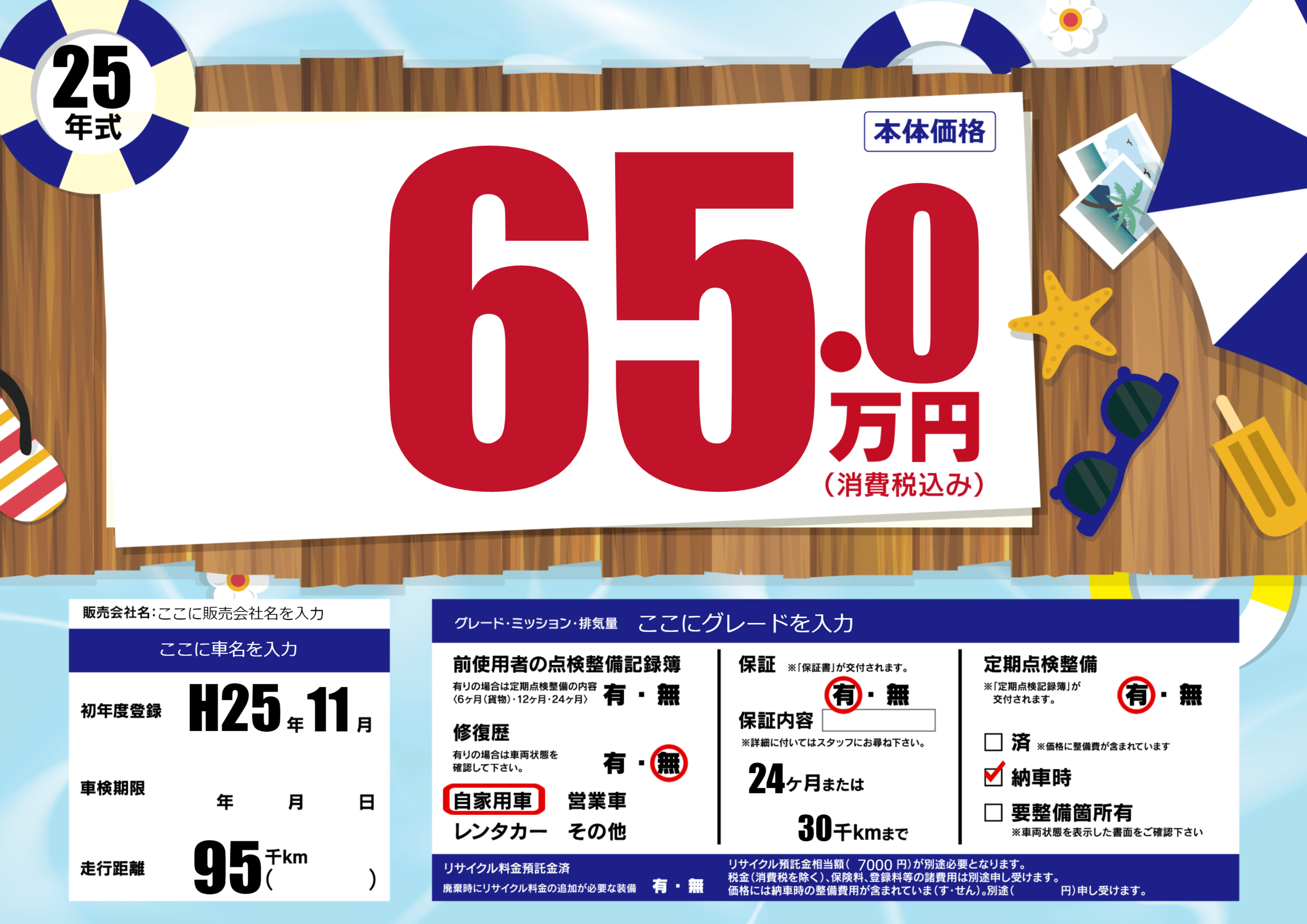 | 車名 | ここに車名を入力 | グレード ミッション 排気量 |