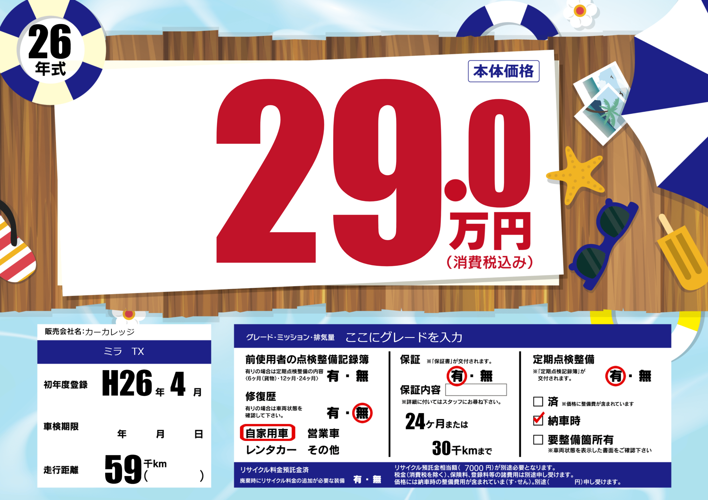 | 走行キロ | 5.9万km | 初年度登録 | H26年4月 |