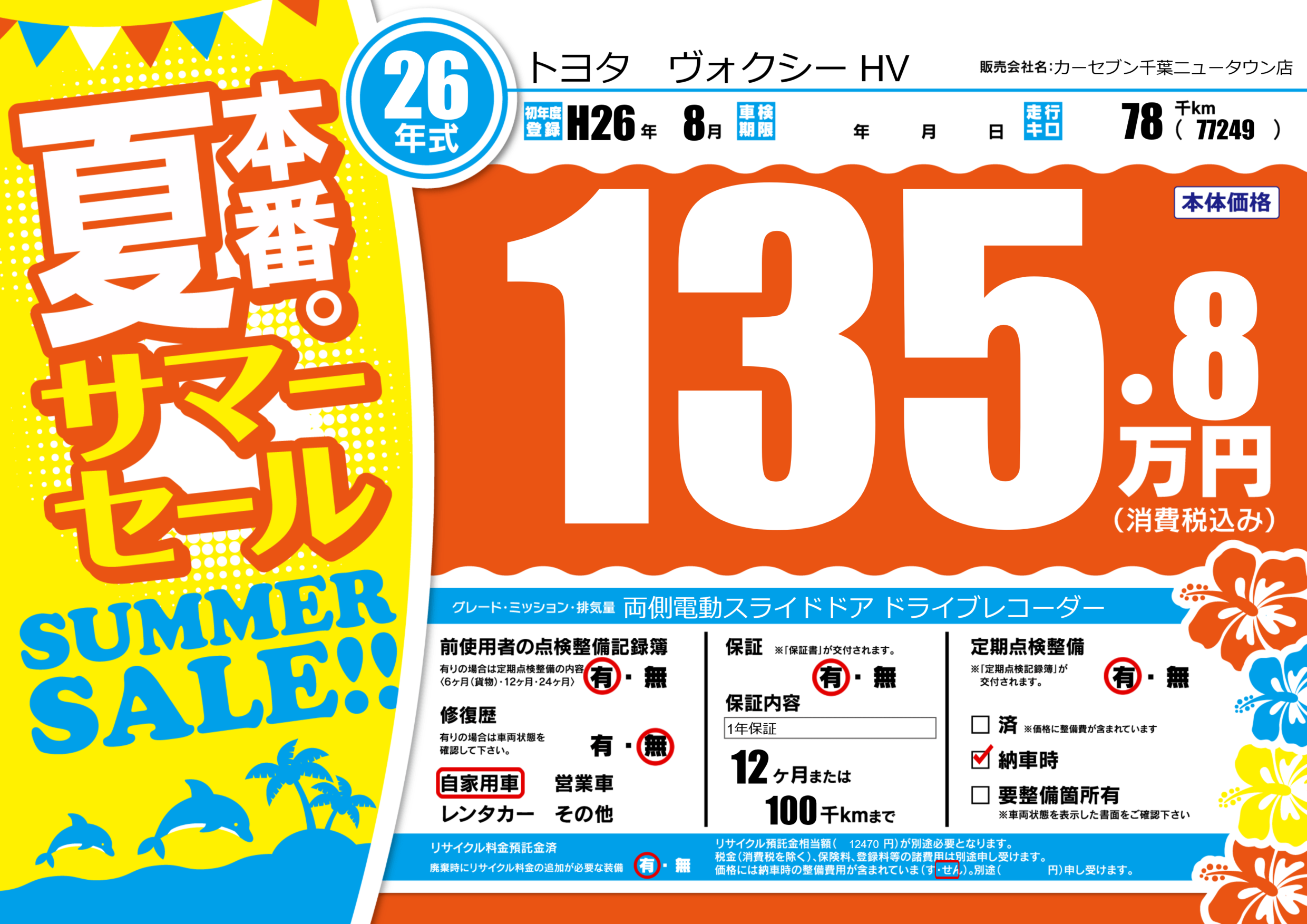 | 走行キロ | 7.8万km | 初年度登録 | H26年8月 |