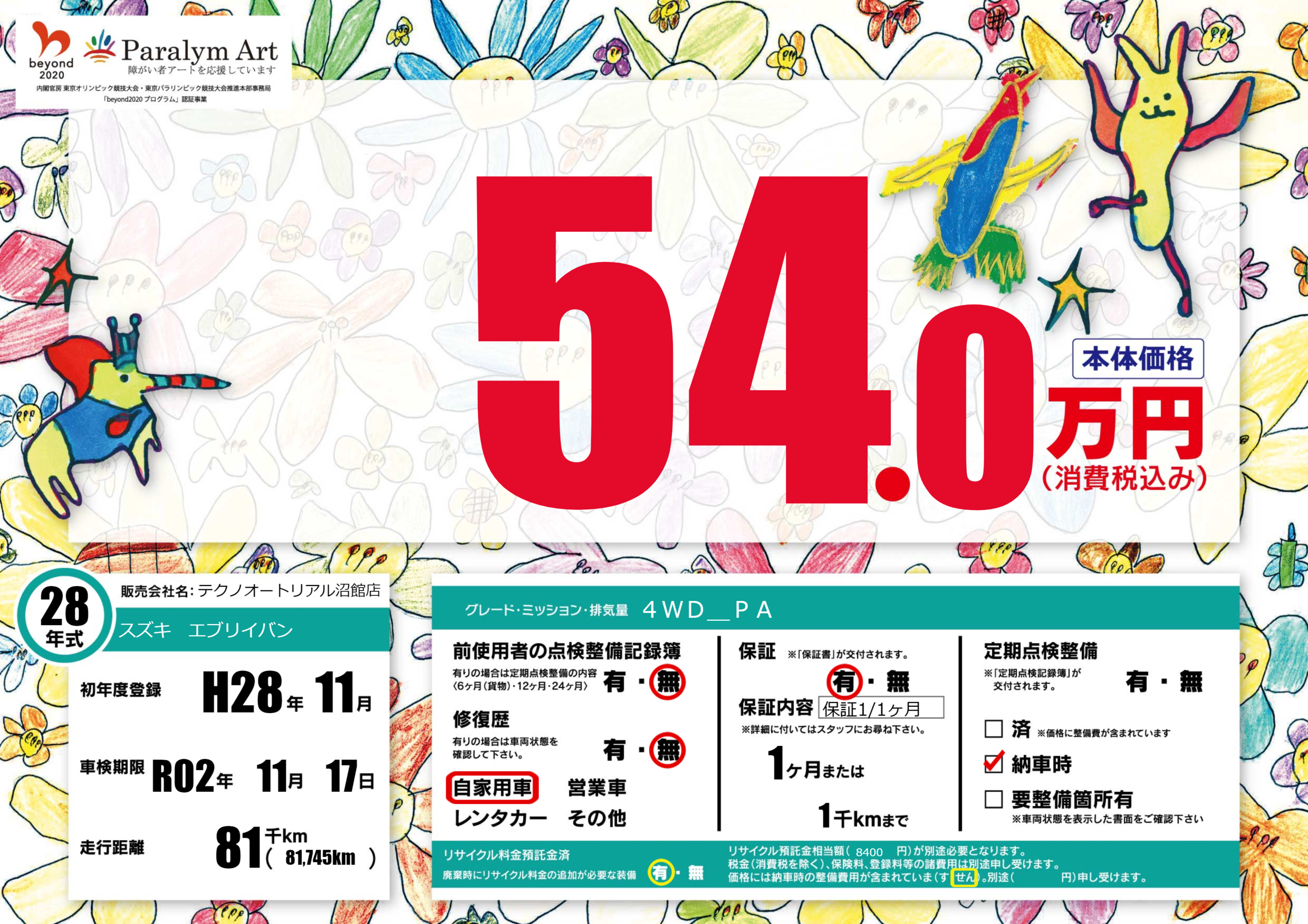 | 車名 | スズキ エブリイバン | グレード ミッション 排気量 |