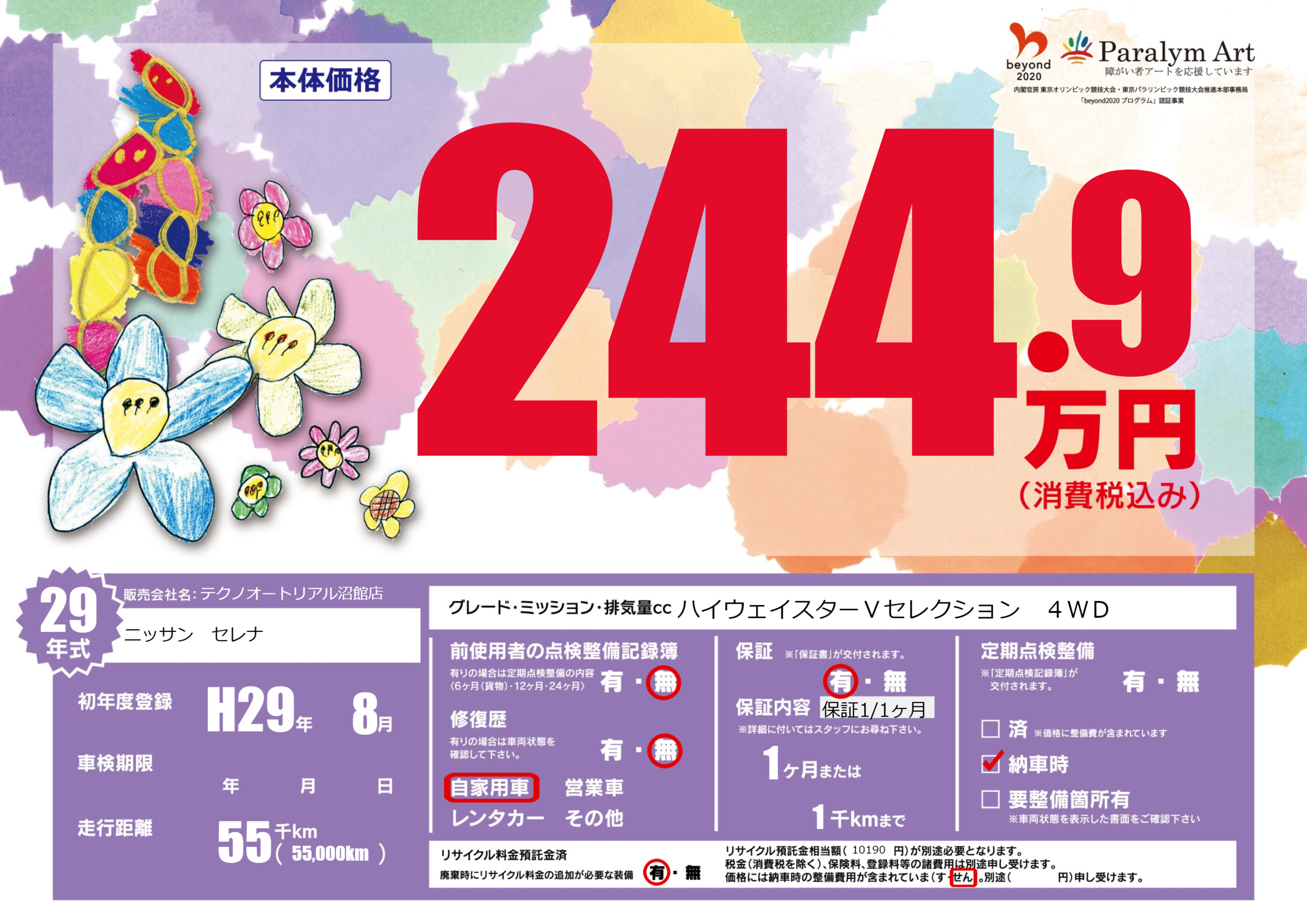 | 走行キロ | 5.5万km | 初年度登録 | H29年8月 |