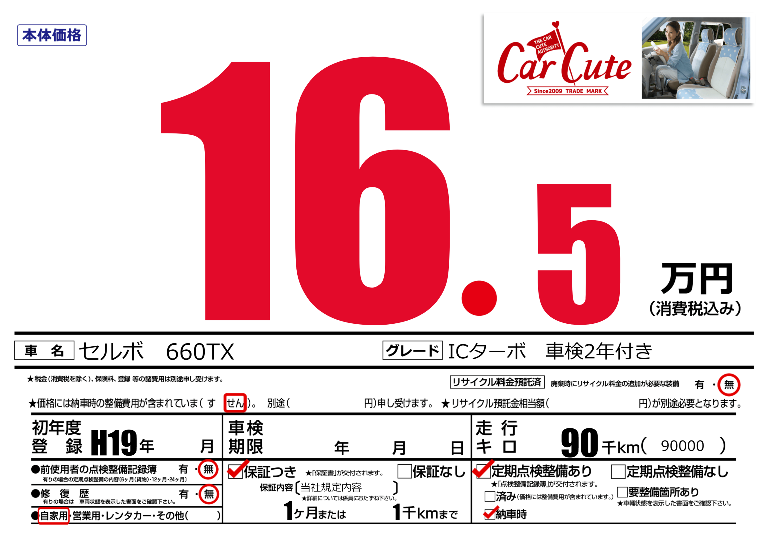 | 定期点検整備 | 定期点検整備あり 納車時あり | ||