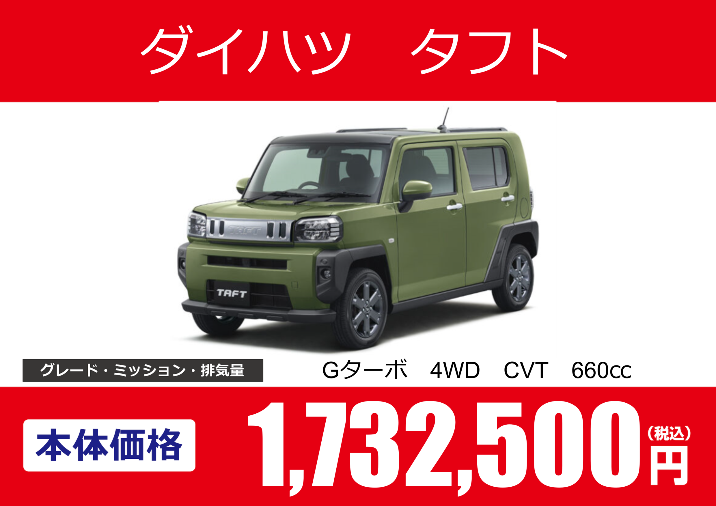 | 車名 | ダイハツ タフト | グレード ミッション 排気量 |